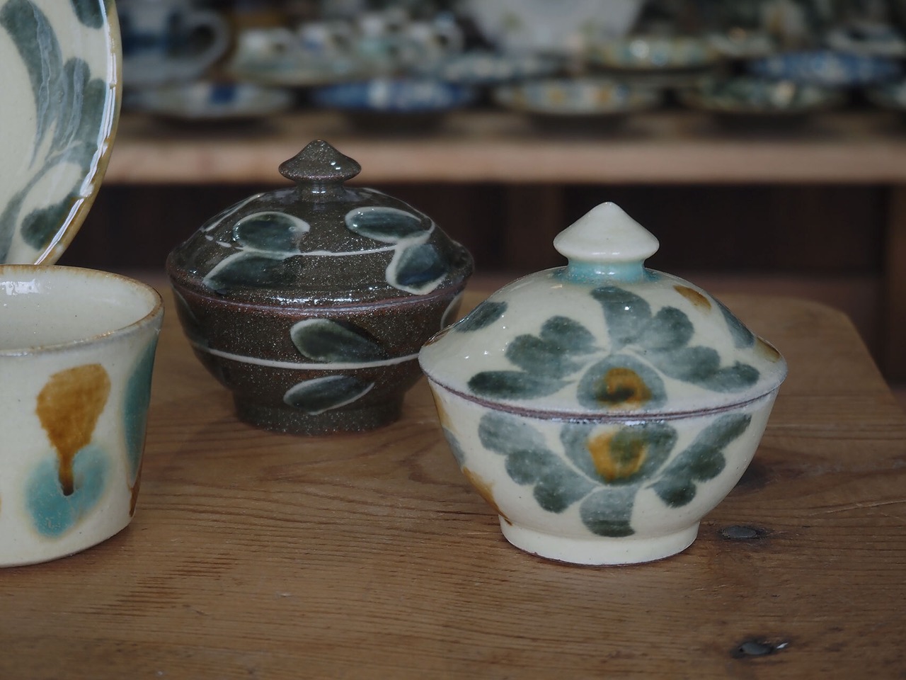 筆捌きの良さや釉薬の色も魅力のひとつ。疲れた日もこんなうつわが食卓に並べば、明るく楽しい気持ちになるはずです。
