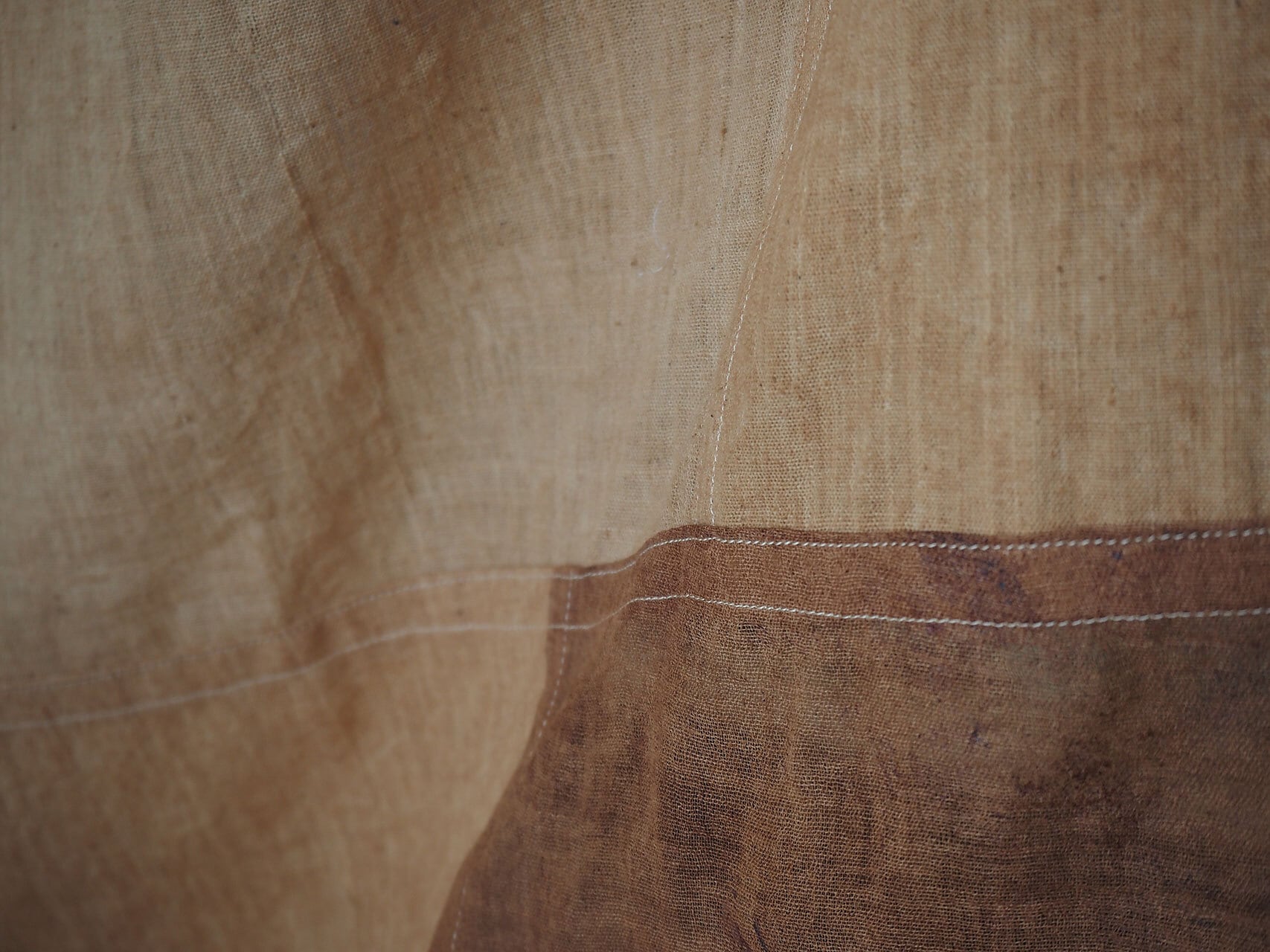 ※柿渋染めは紫外線に当たると色が濃くなっていきます。外干しの際、日の当たり方で線や色ムラになりますので、全体を日に当てるか陰干ししてください。