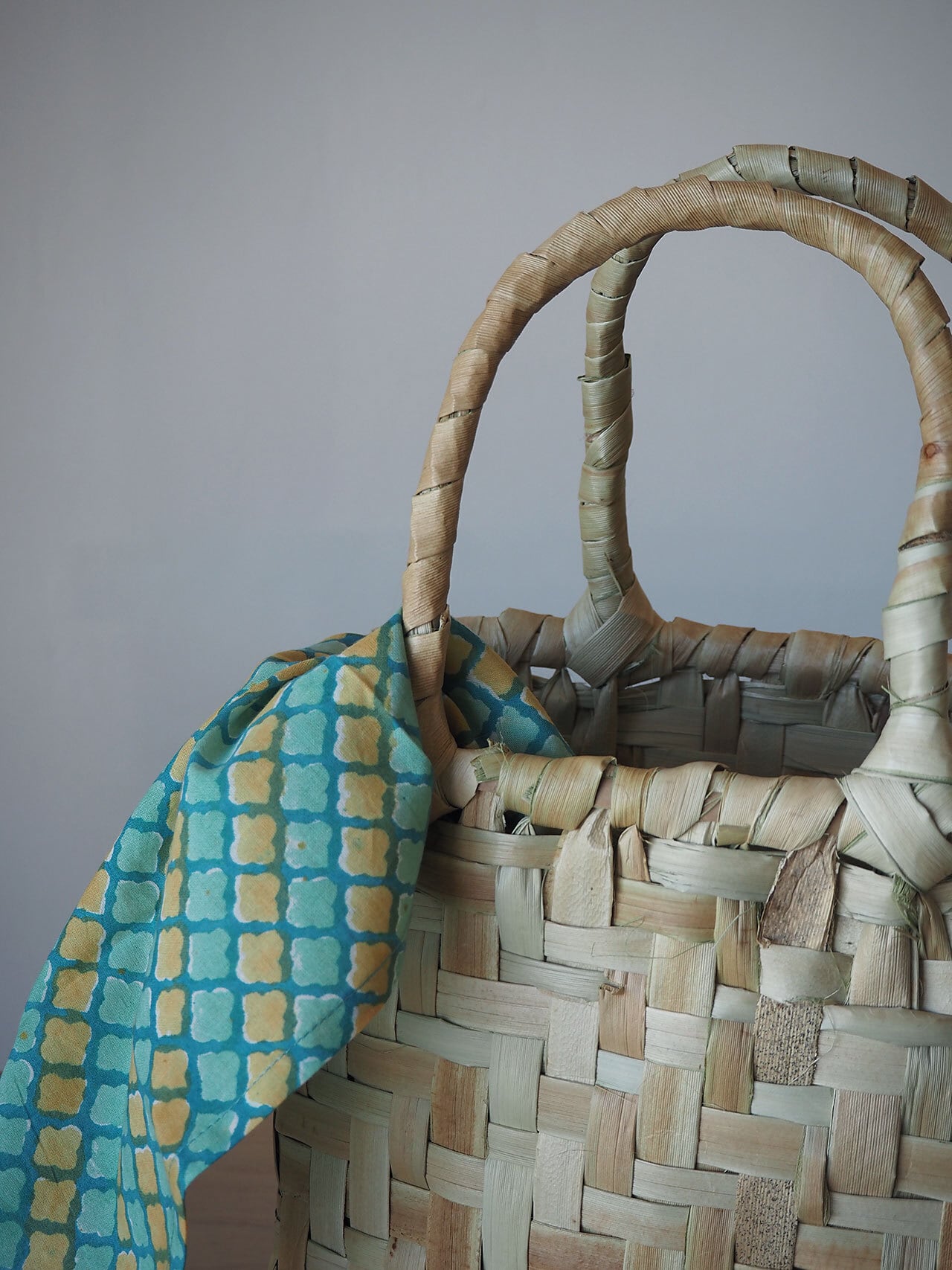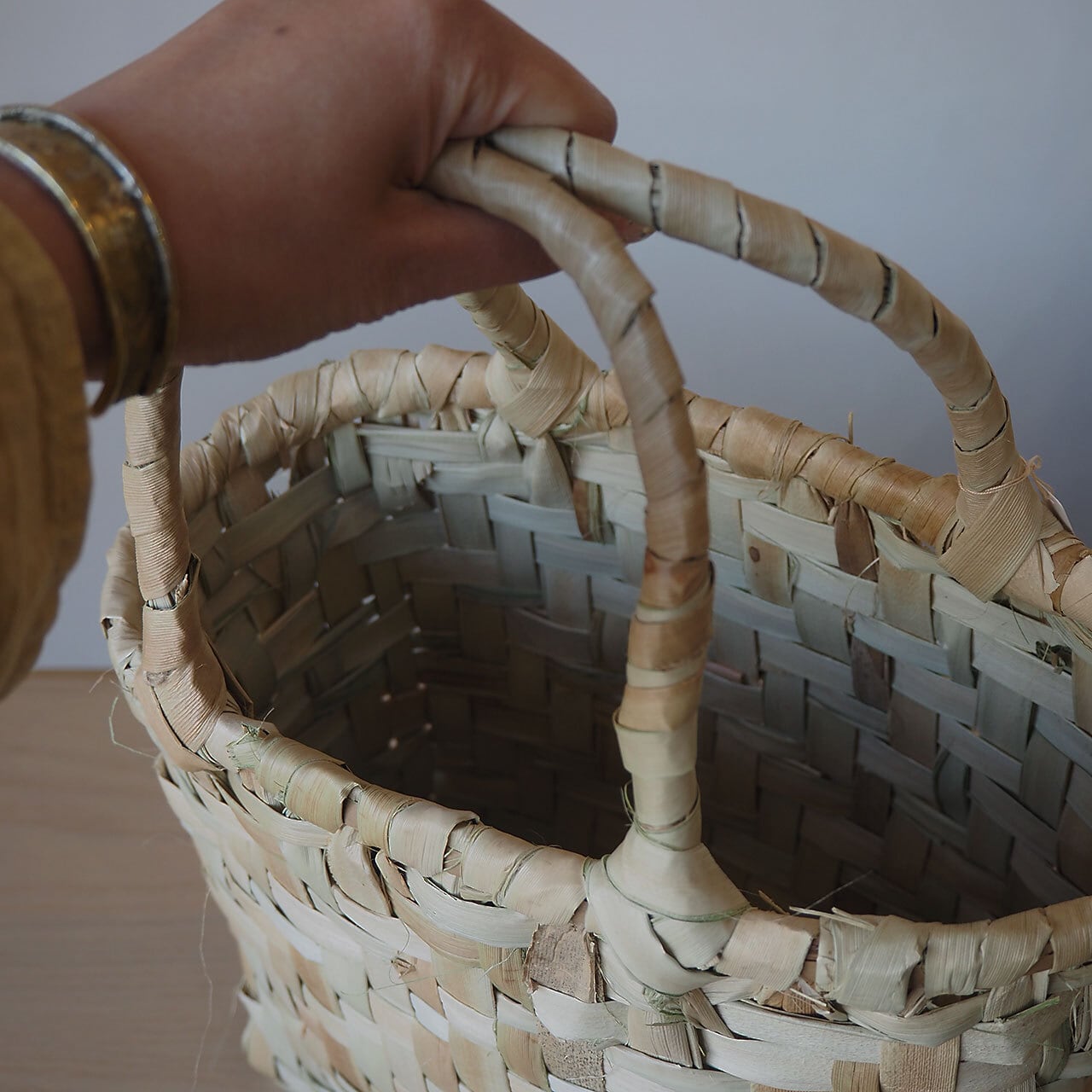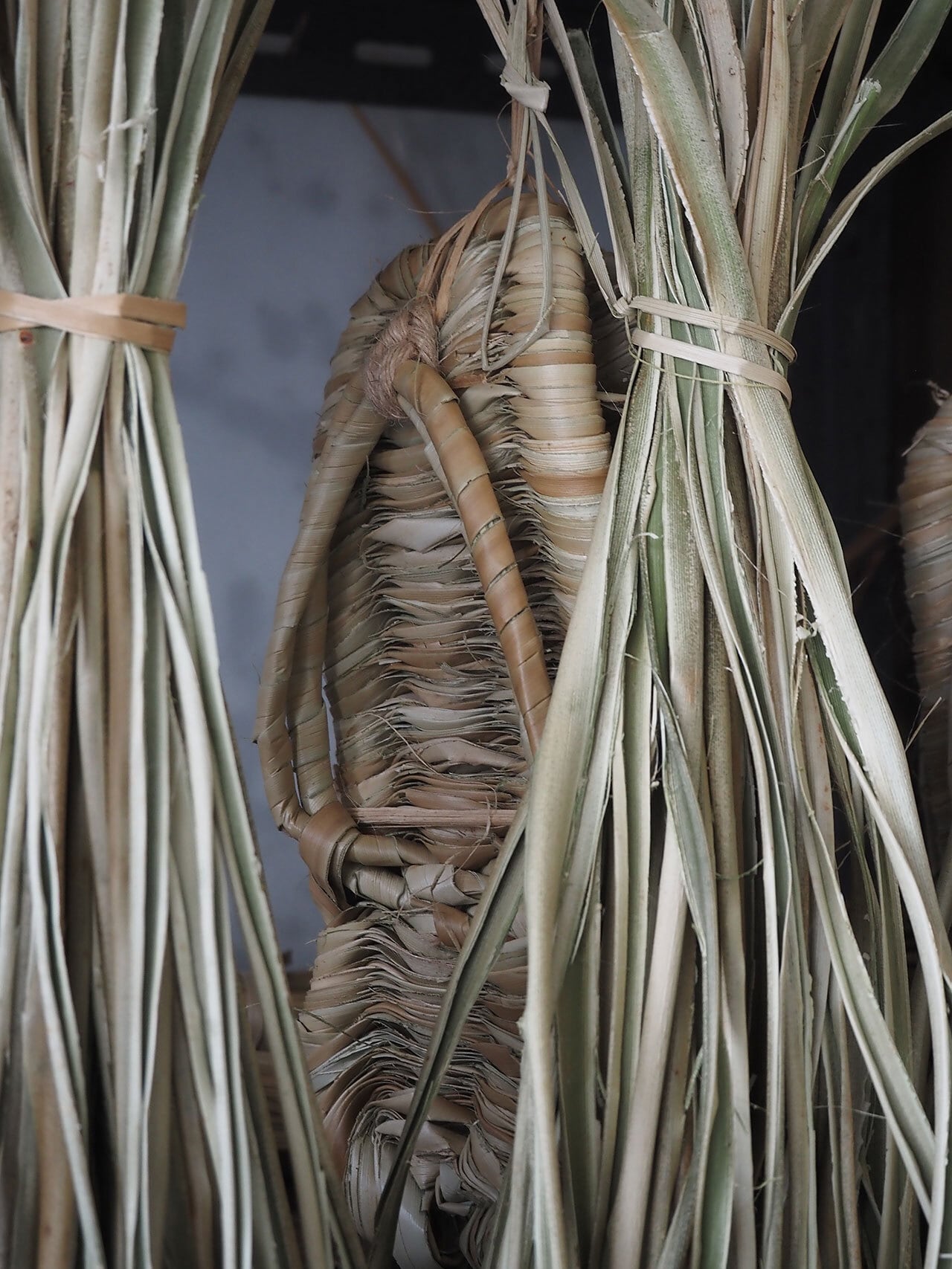 葉を使っているので竹細工よりも当たりが柔らかく、軽いです。