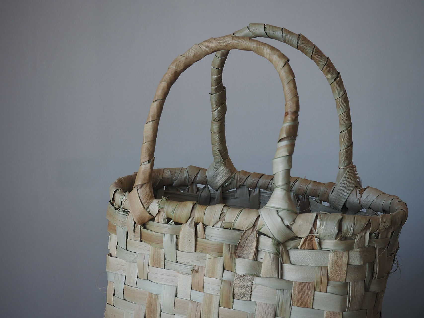 石垣島のオジィ(昭和10年生まれ!)が編んだ、アダン葉の手付きかご。