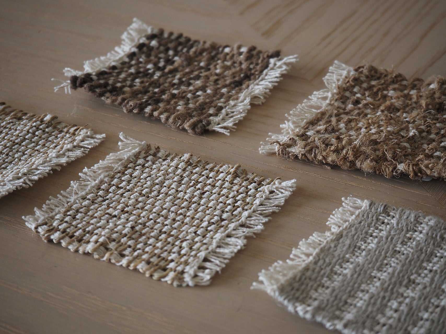 素材そのものの美しさを活かしたいので、手織りの品はすべて無染色、素材そのままの色です。