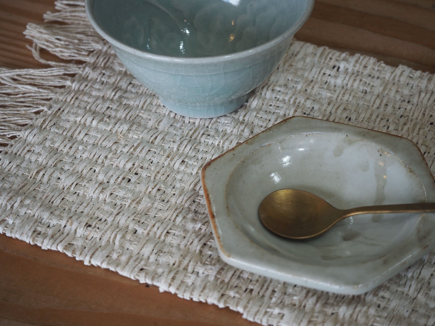 表情豊かな自然素材を活かした四角い敷き布。