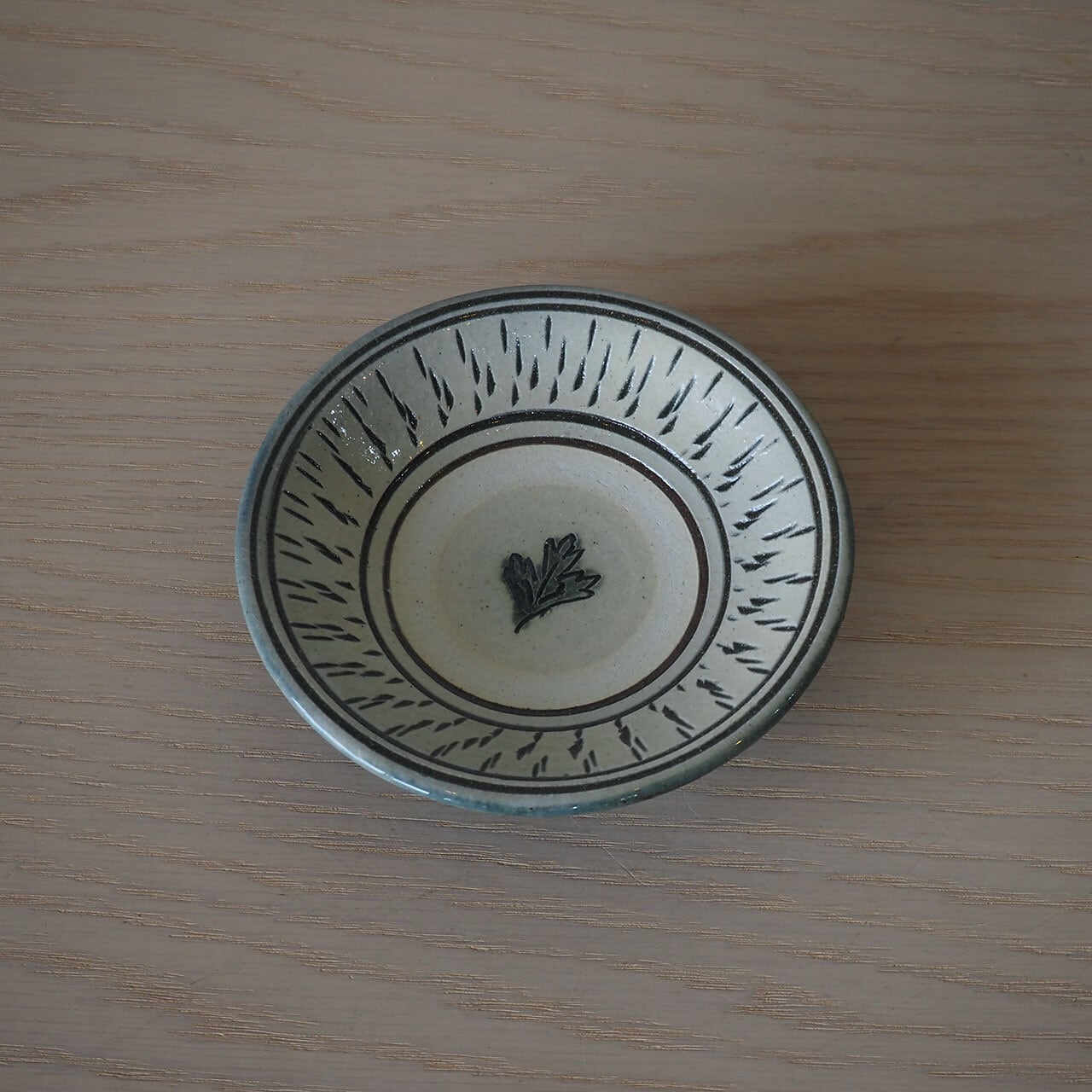 百草陶房 4寸皿(飛び鉋にフーチバー/呉須)