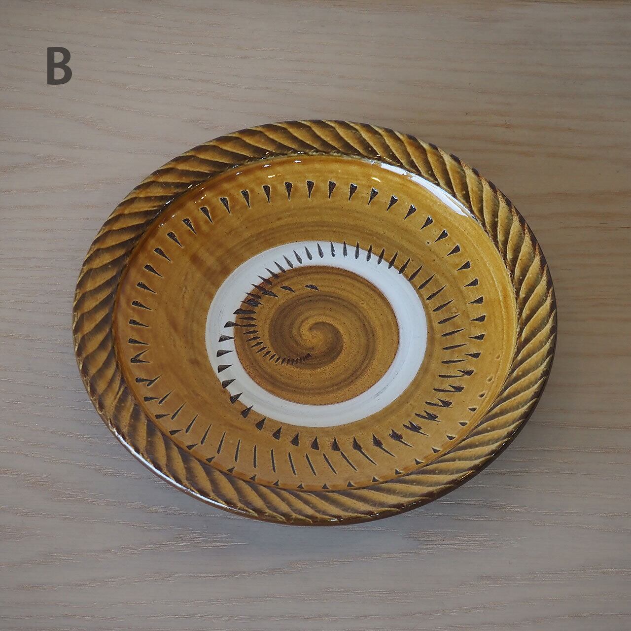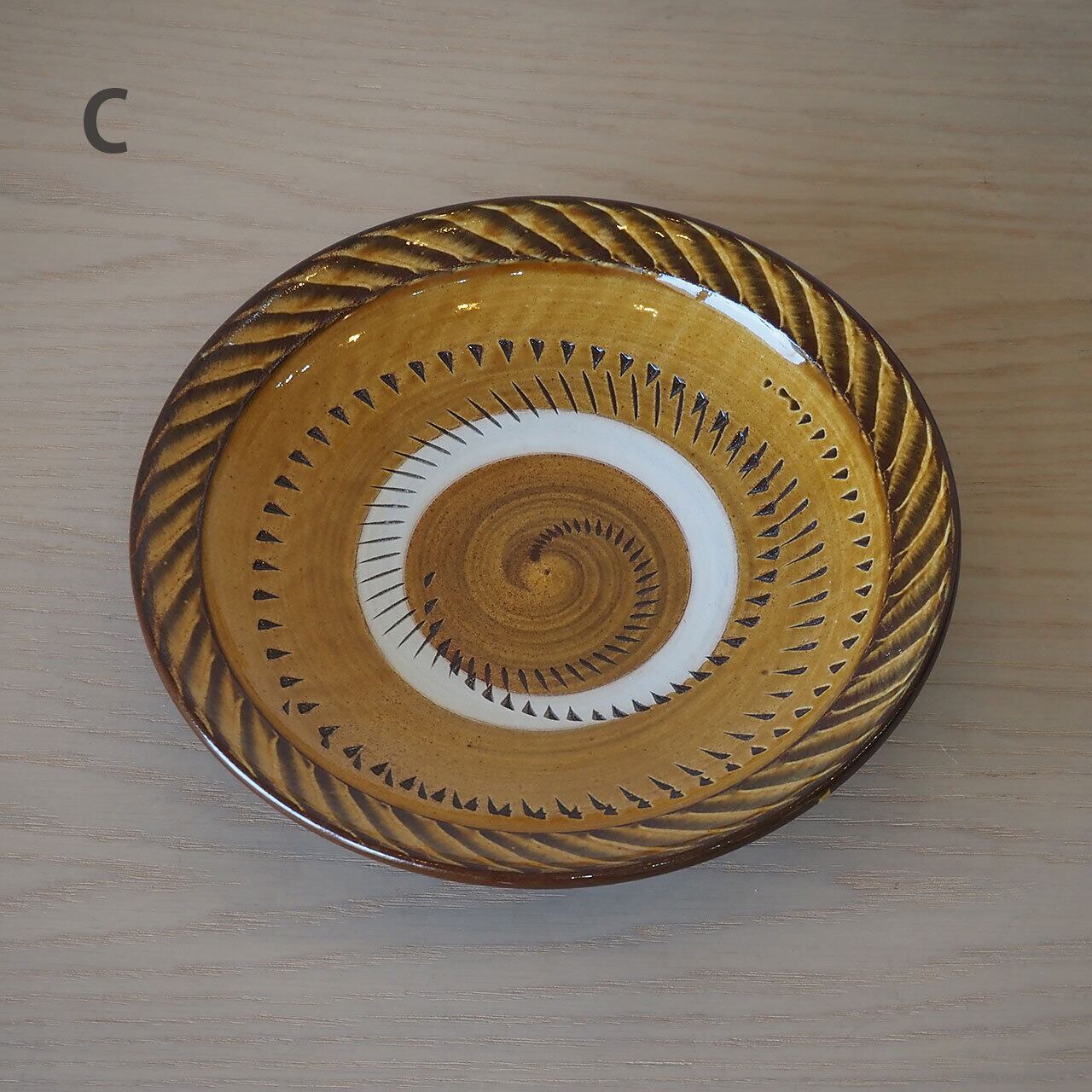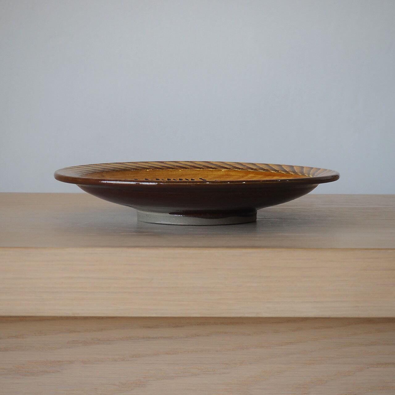 小鹿田焼 坂本浩二窯 8寸皿(飴/縁刷毛・抜き飛び鉋)