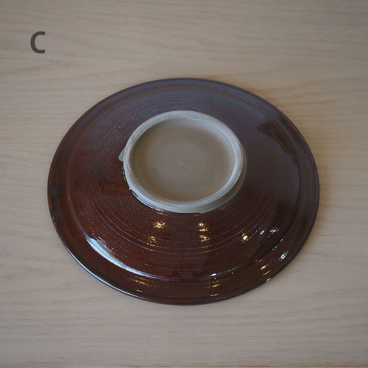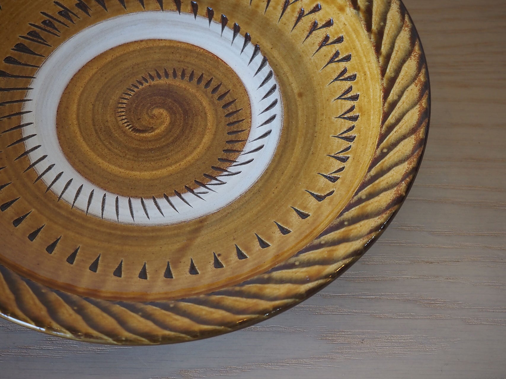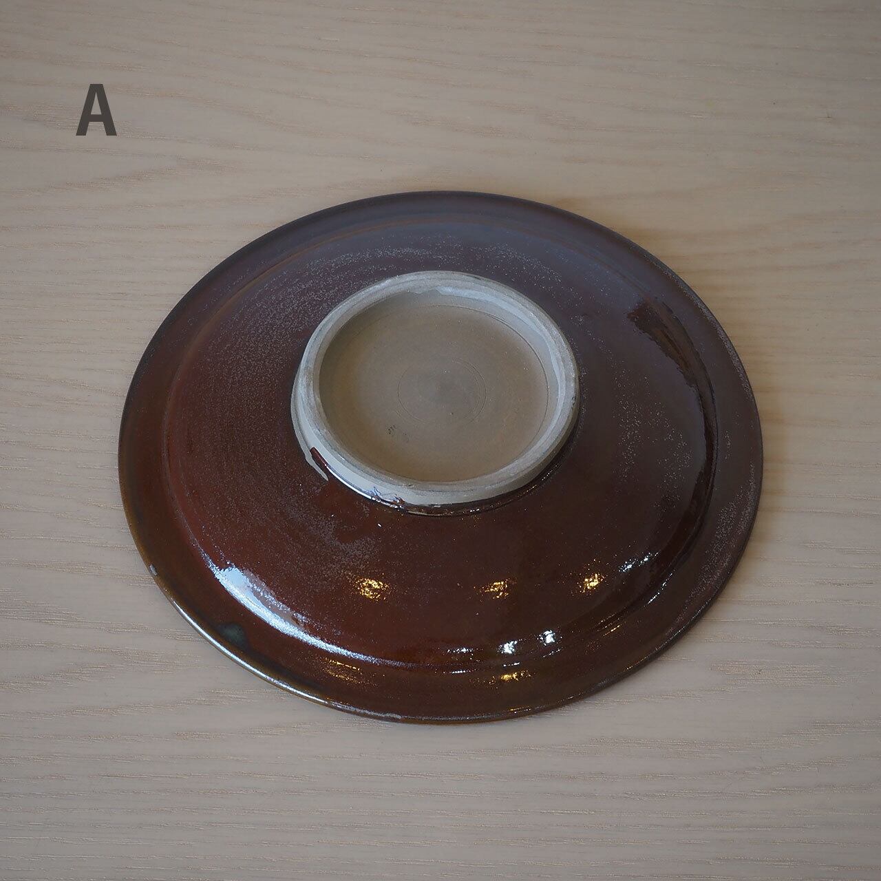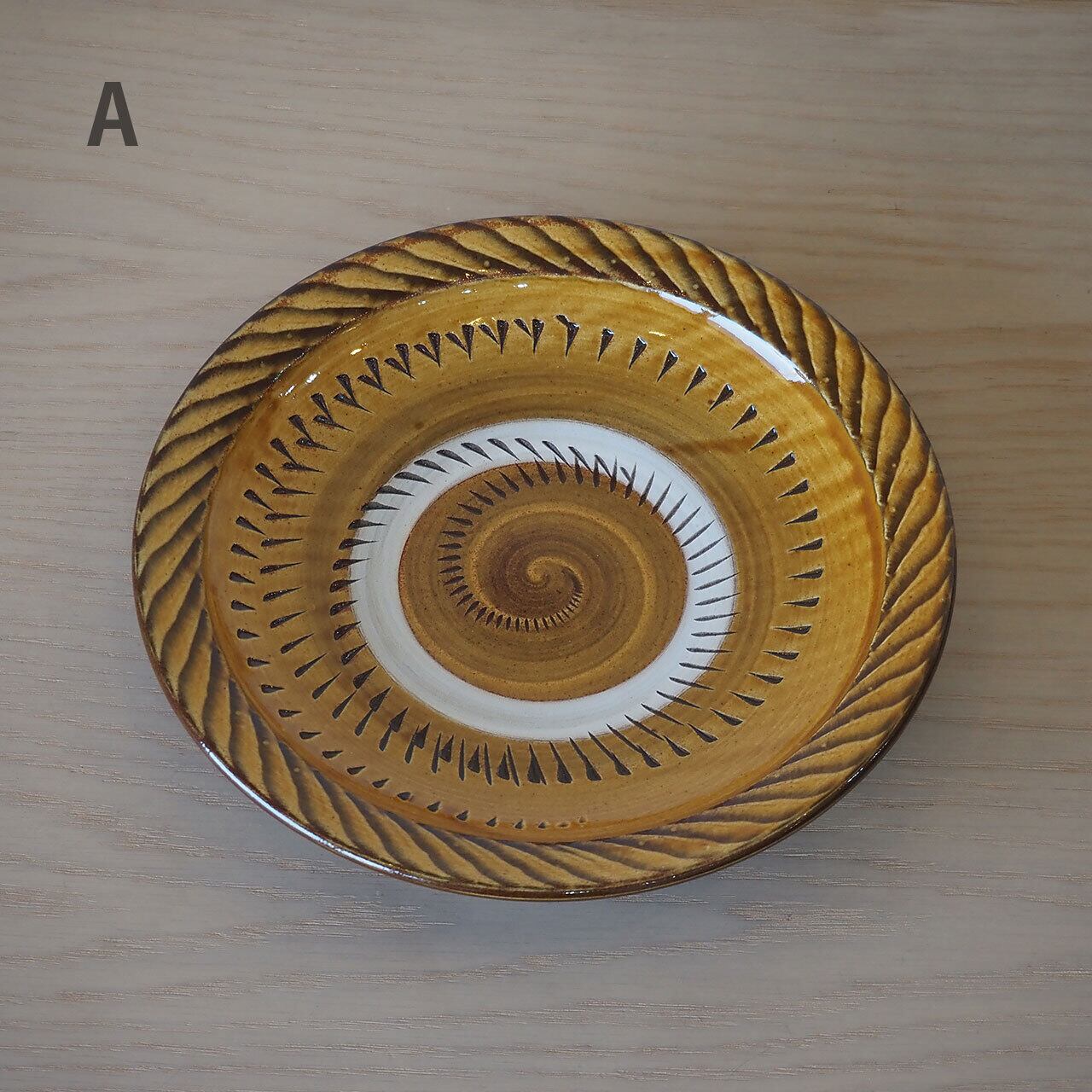 小鹿田焼 坂本浩二窯 8寸皿(飴/縁刷毛・抜き飛び鉋)