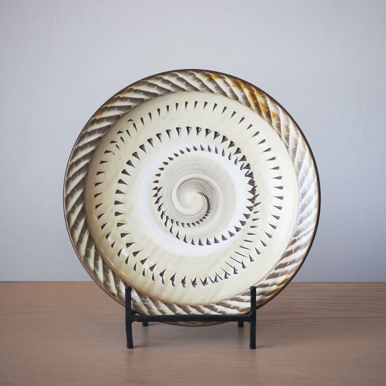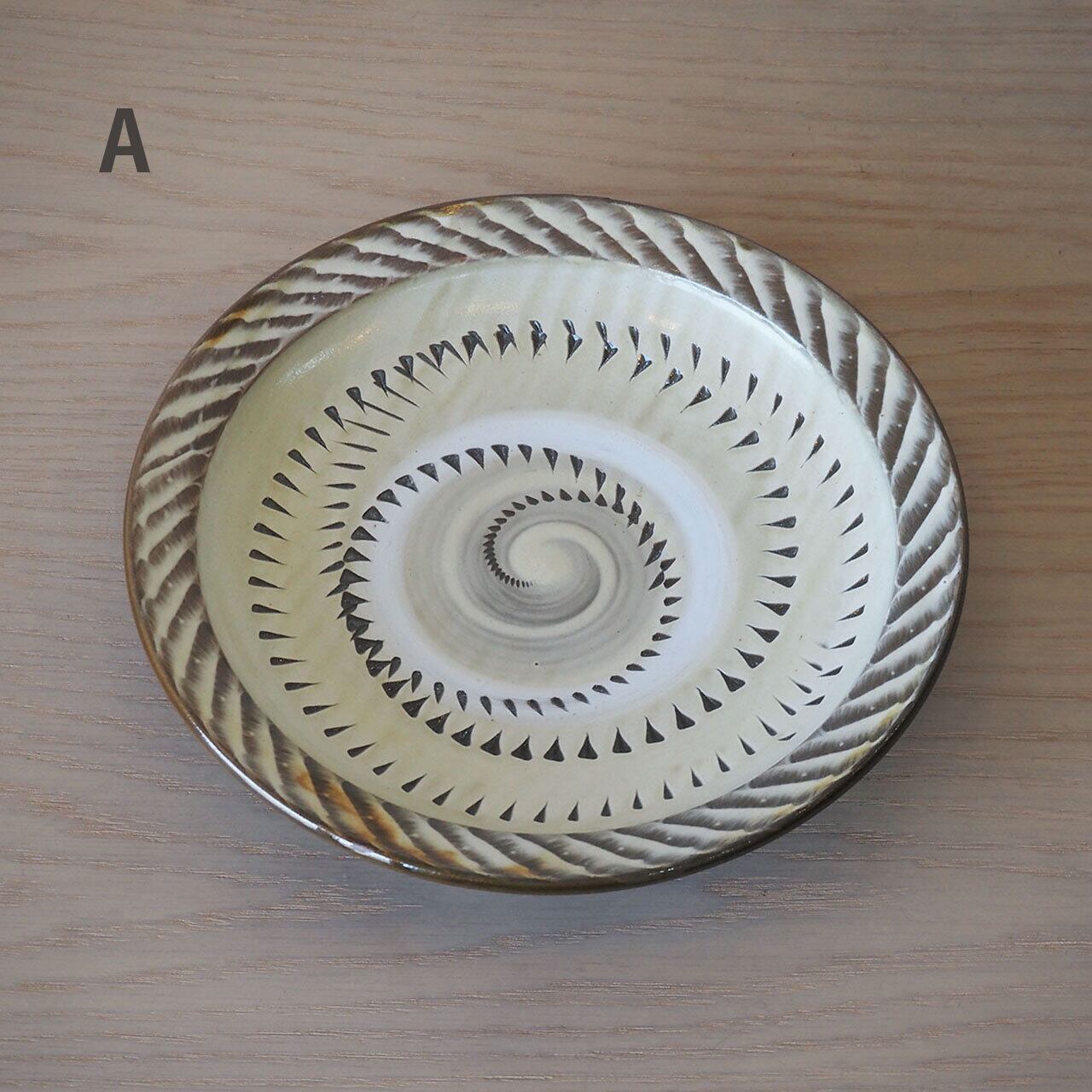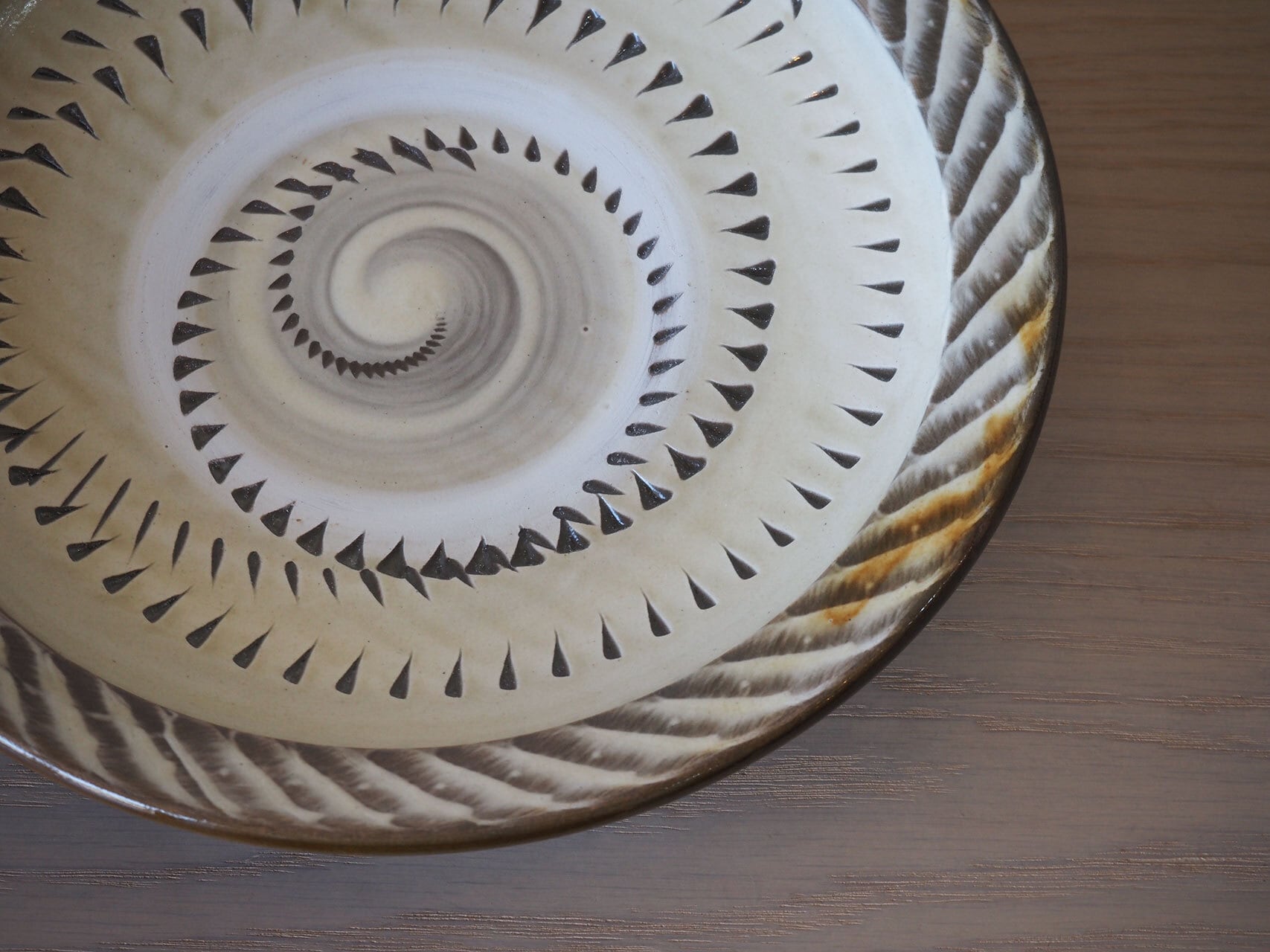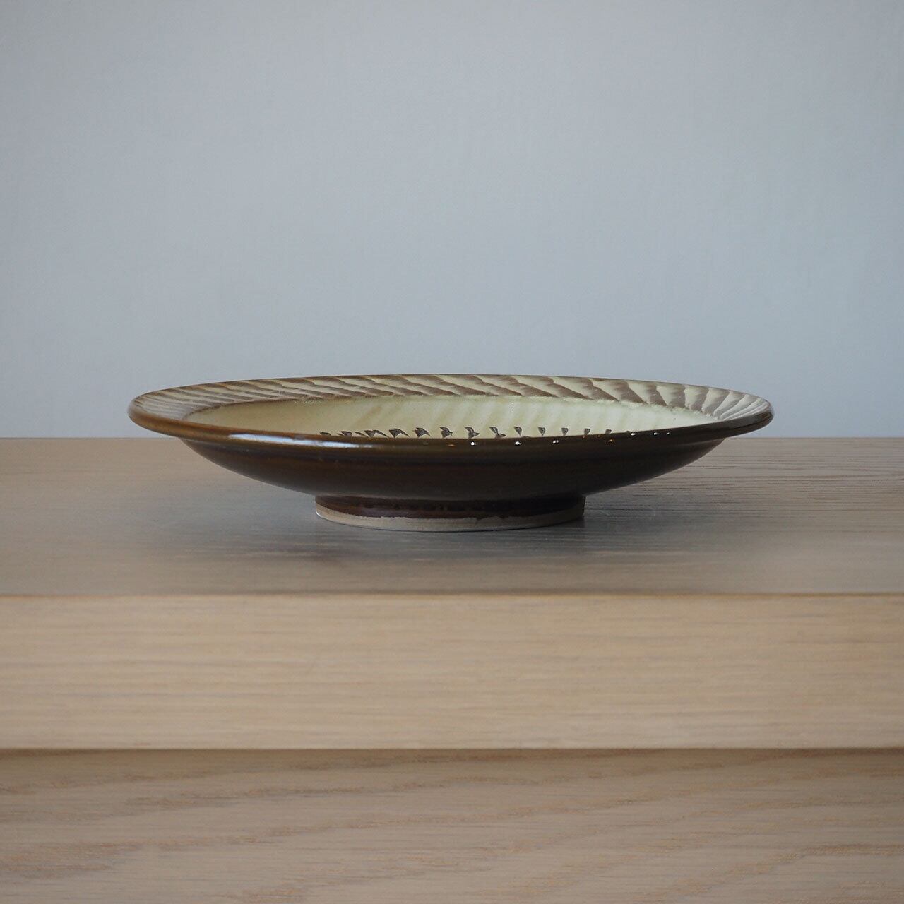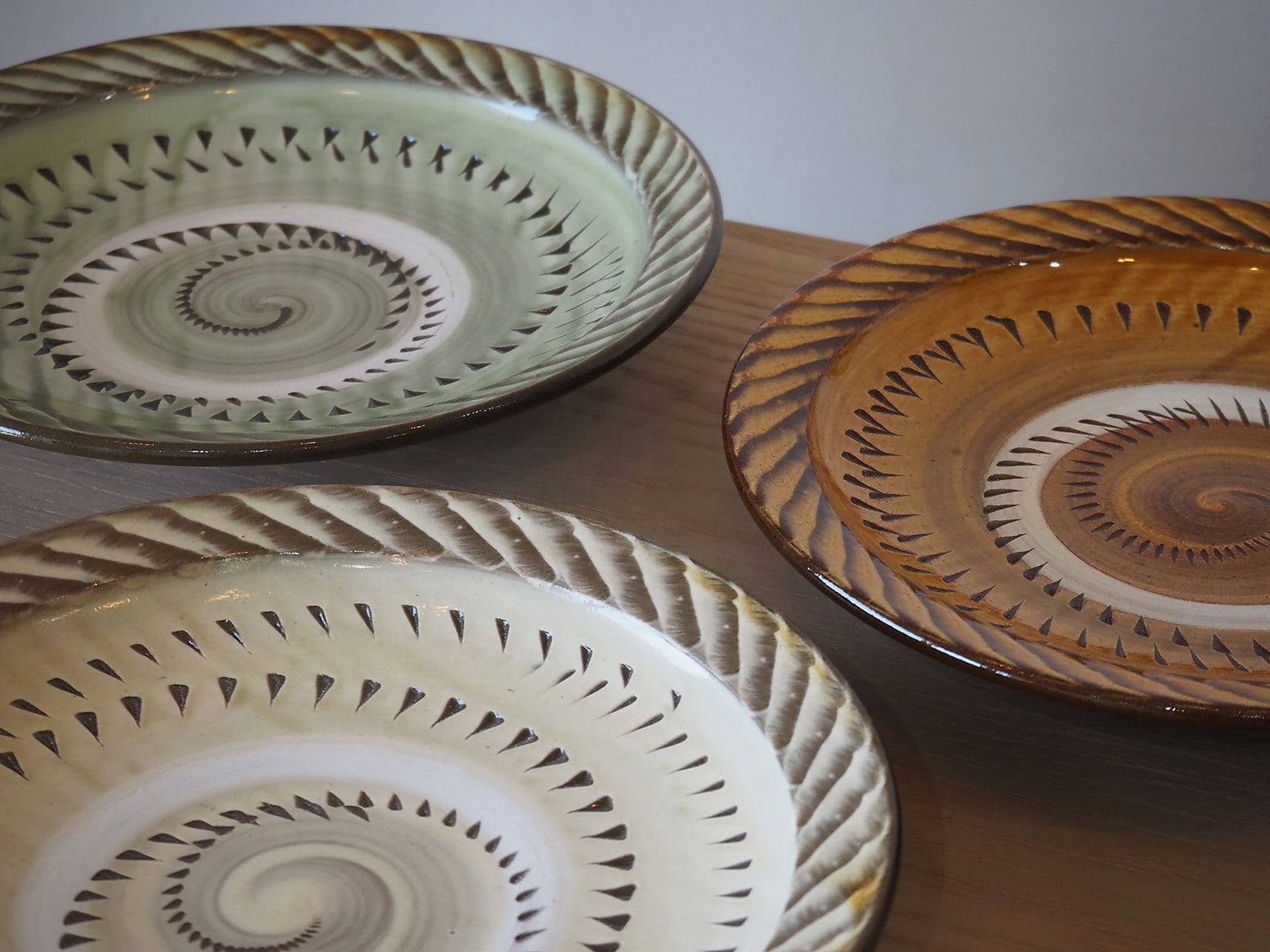 生き生きとした抜き飛び鉋が坂本浩二窯らしい、8寸皿。