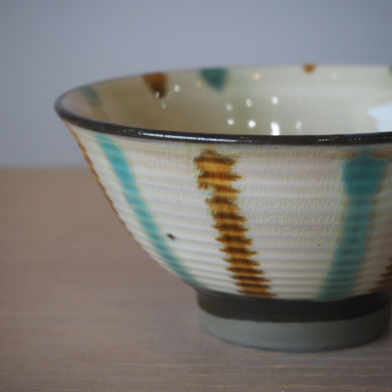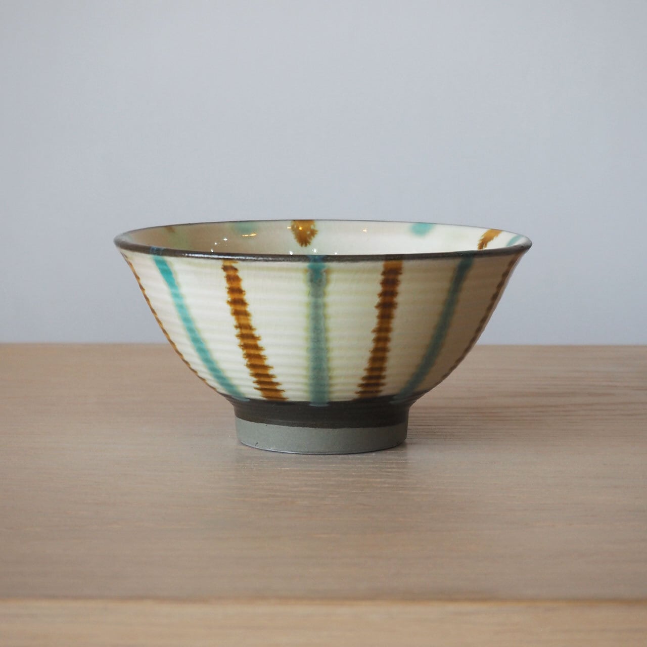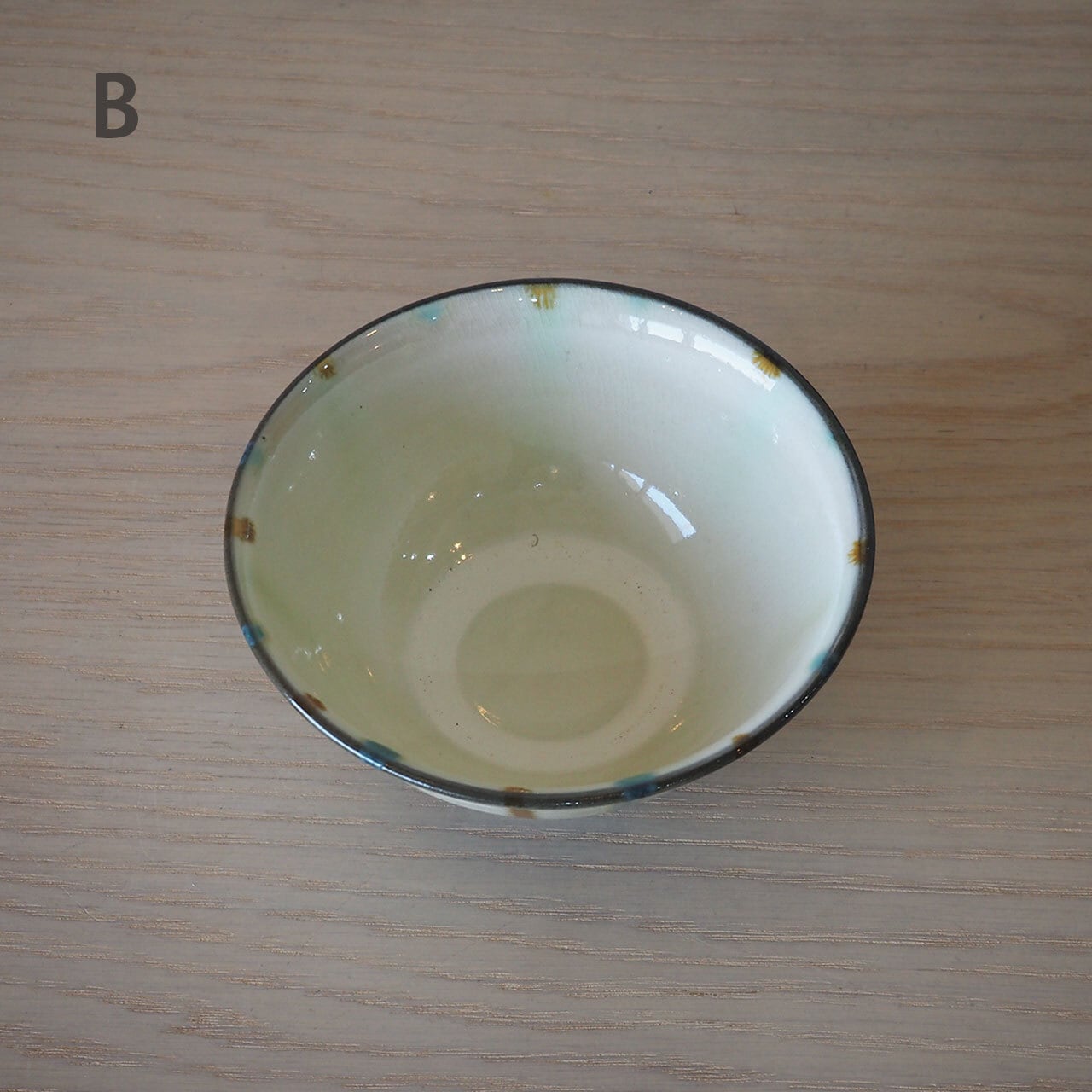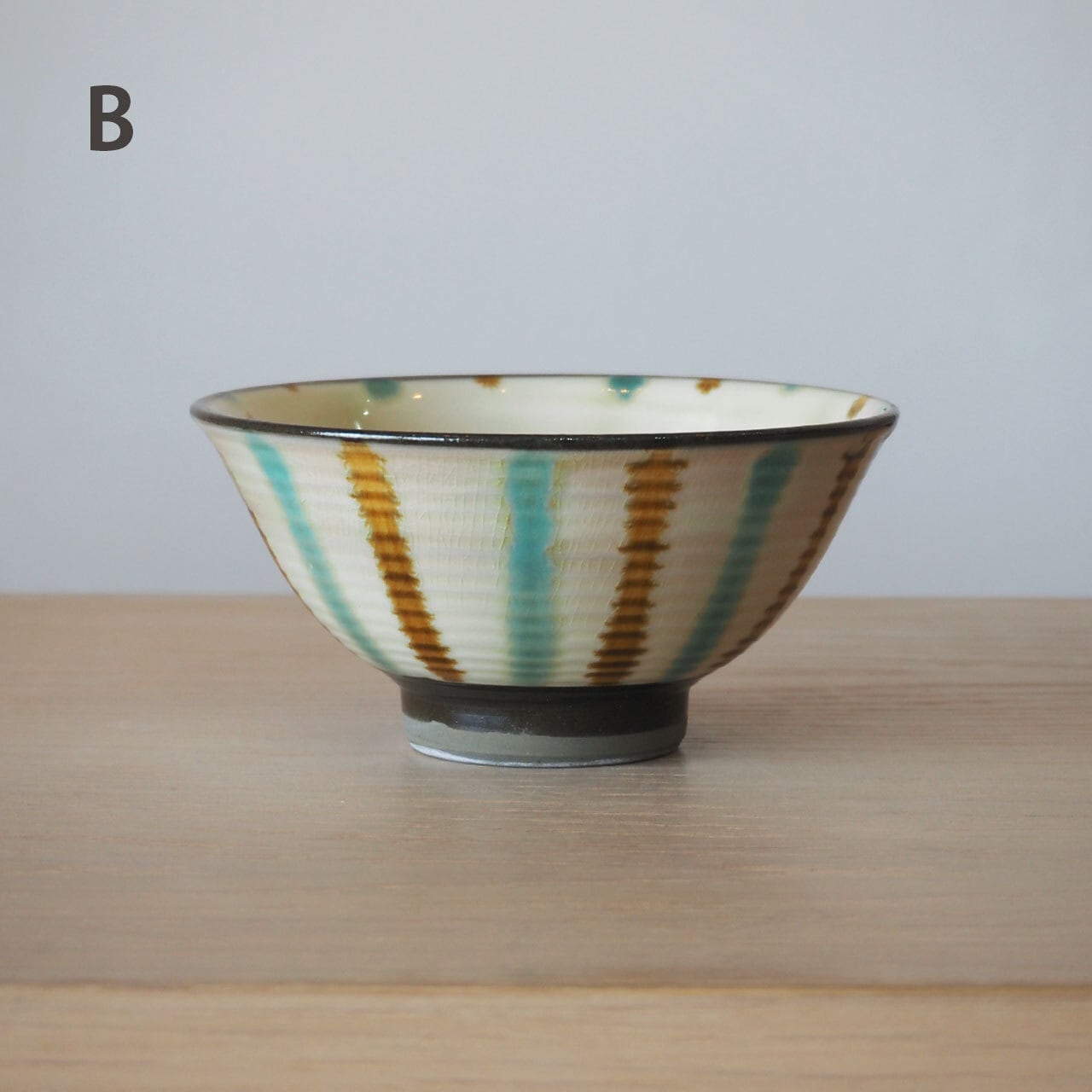 小鹿田焼 坂本浩二窯 4.5寸飯碗(白/千段巻に三彩)