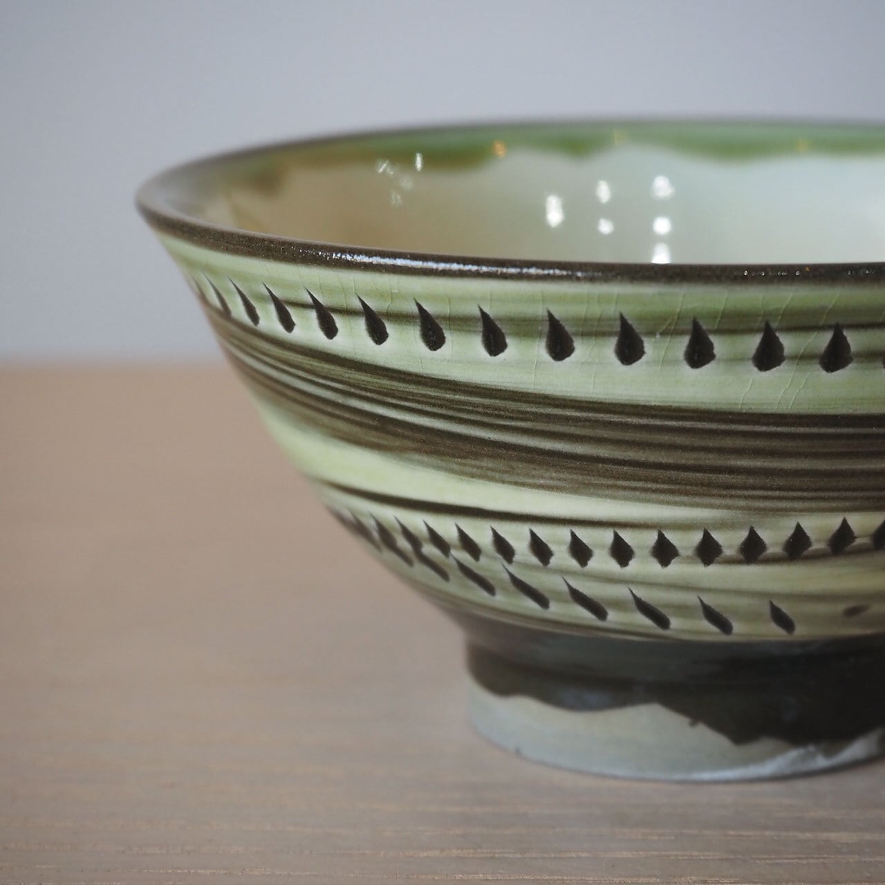 小鹿田焼 坂本浩二窯 4寸飯碗(うす青/藁引き抜き飛び鉋)