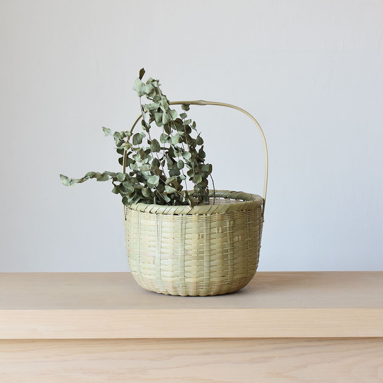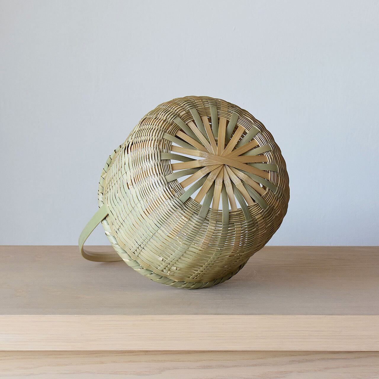 真竹(まだけ)の手付き籠。菊底編みで編まれた綺麗な丸い作りです。
