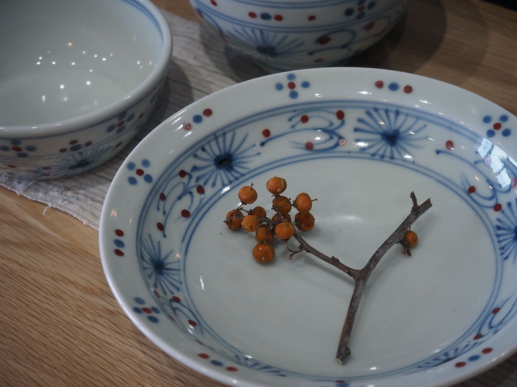 「安南」とはフランス統治時代のベトナムのこと。室町~江戸時代に渡来した安南焼の柄をモチーフとした、かわいらしい柄も魅力的な品です。