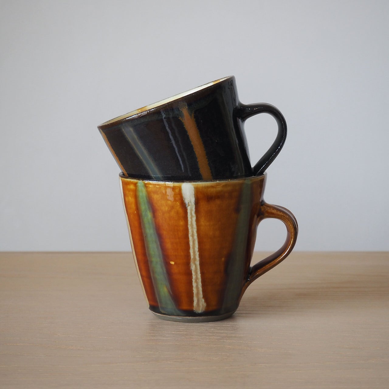 小鹿田焼 黒木昌伸窯 台形マグカップ(黒/三彩)