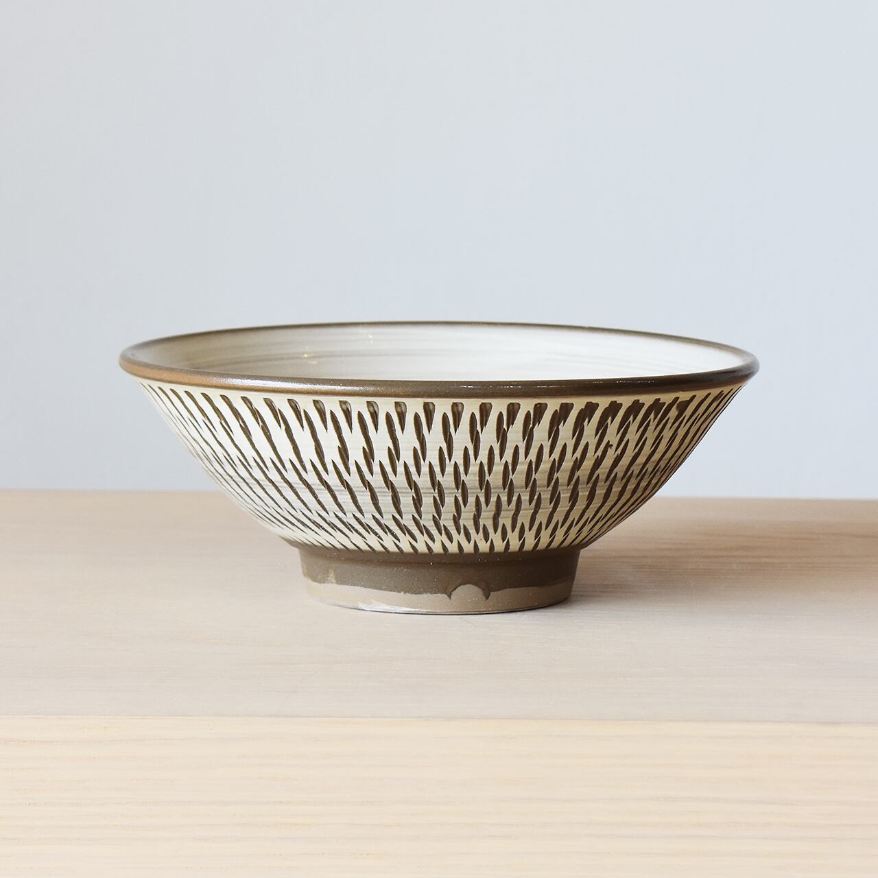 小鹿田焼 坂本浩二窯 7寸丼(白・飛び鉋)