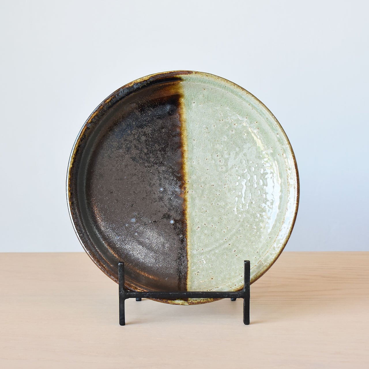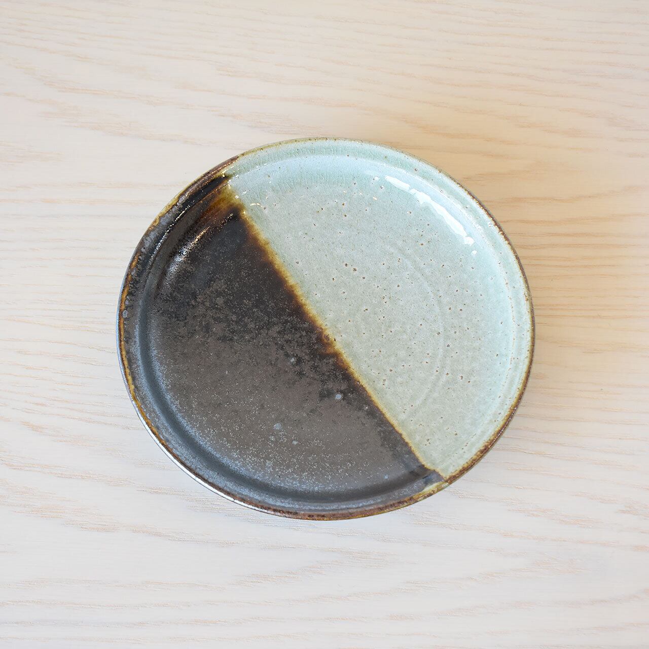 灰釉と鉄釉の味わい深い掛け分け7.5寸皿。