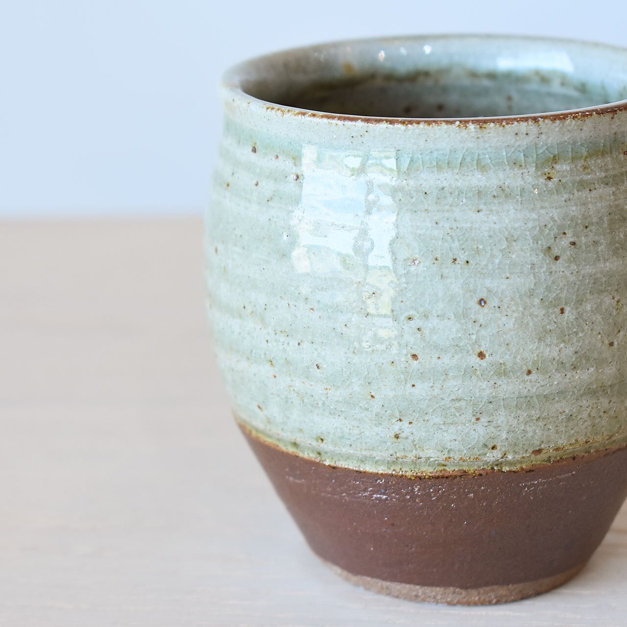 僅かに緑がかった透明感ある灰釉の濃淡が美しい品です。