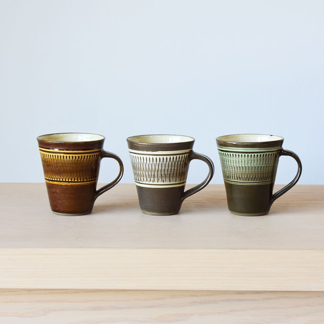 小鹿田焼 黒木昌伸窯 長マグカップ(飴・帯で飛び鉋)