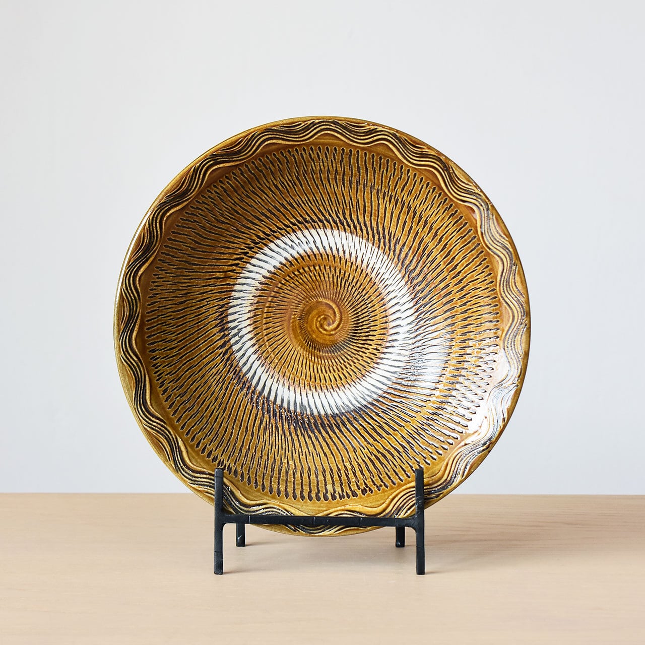 小鹿田焼 黒木昌伸窯 8寸深皿(飴/飛び鉋に櫛)