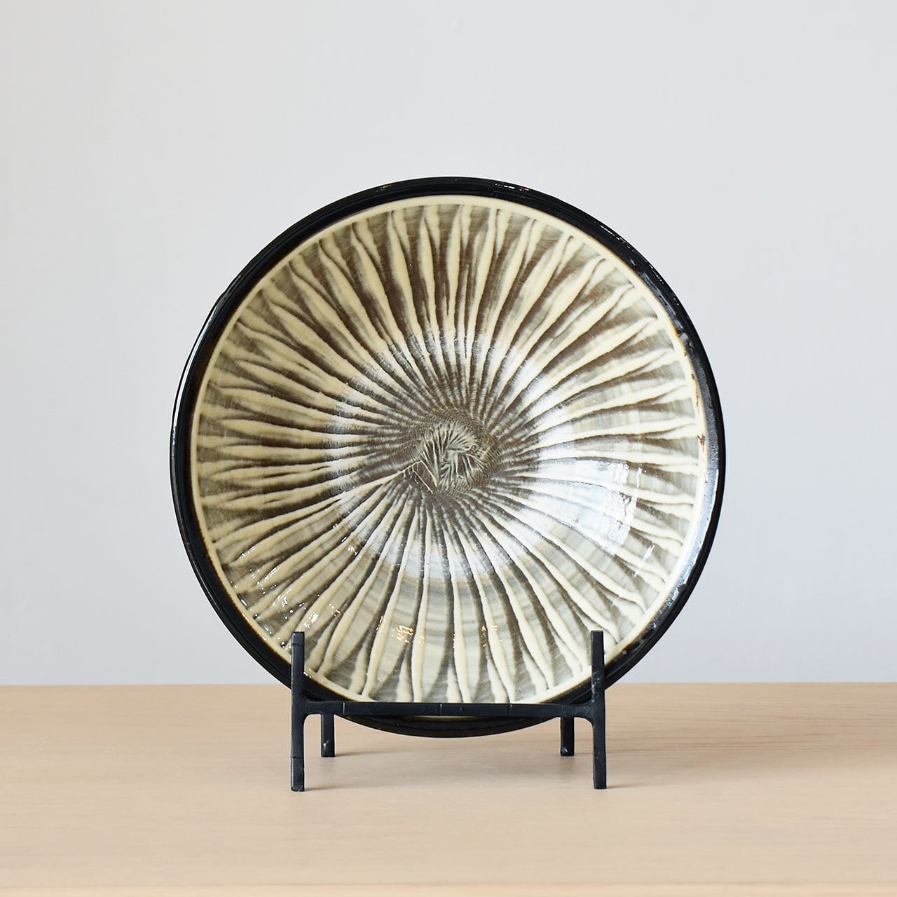 小鹿田らしい打ち刷毛目に縁が付いているので引き締まった印象です。