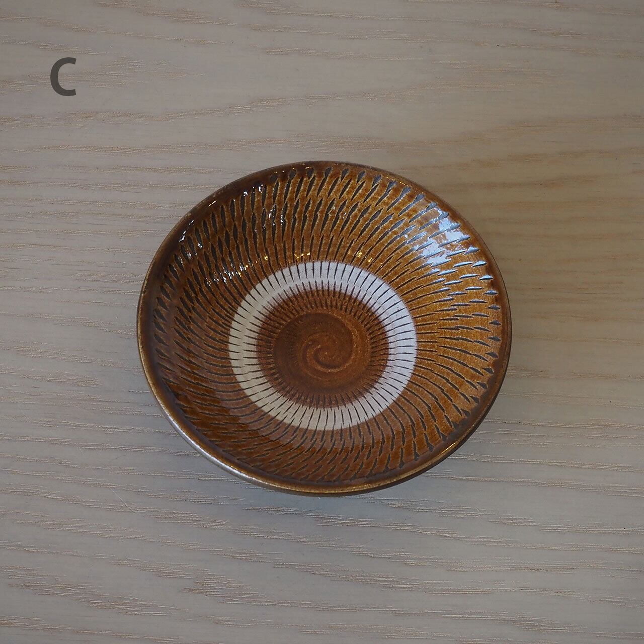 小鹿田焼 黒木昌伸窯 4寸皿(飴/飛び鉋)
