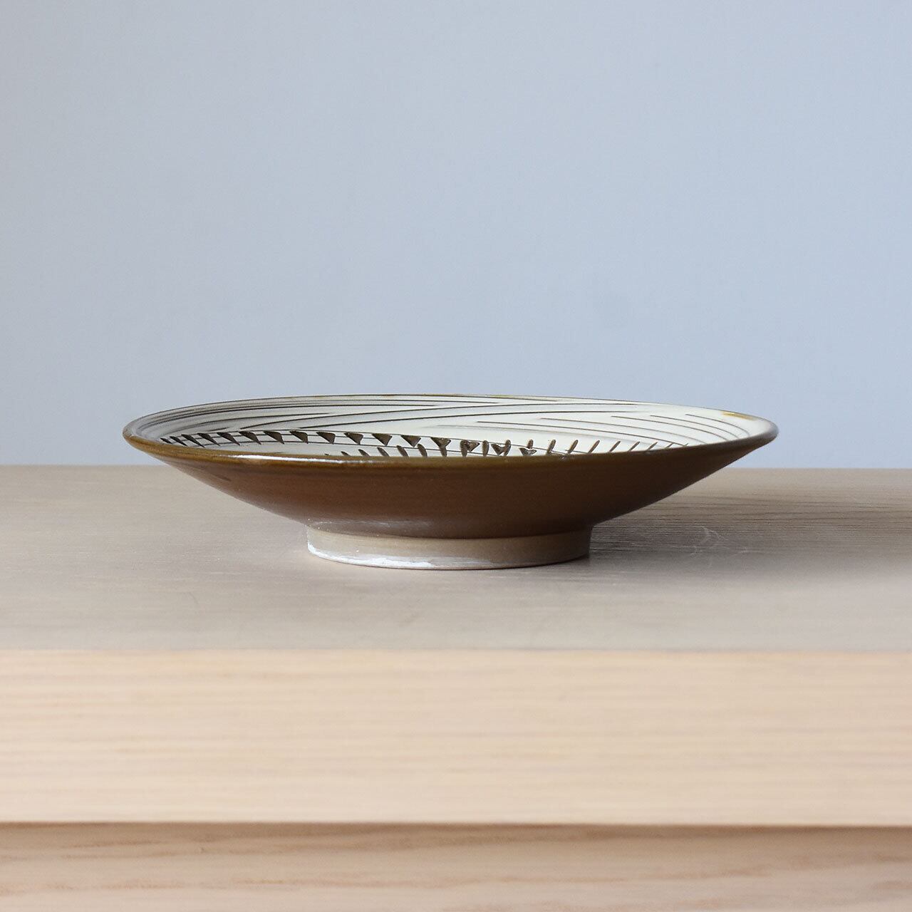 小鹿田焼 坂本浩二窯 7寸皿(白/藁引き抜き飛び鉋)