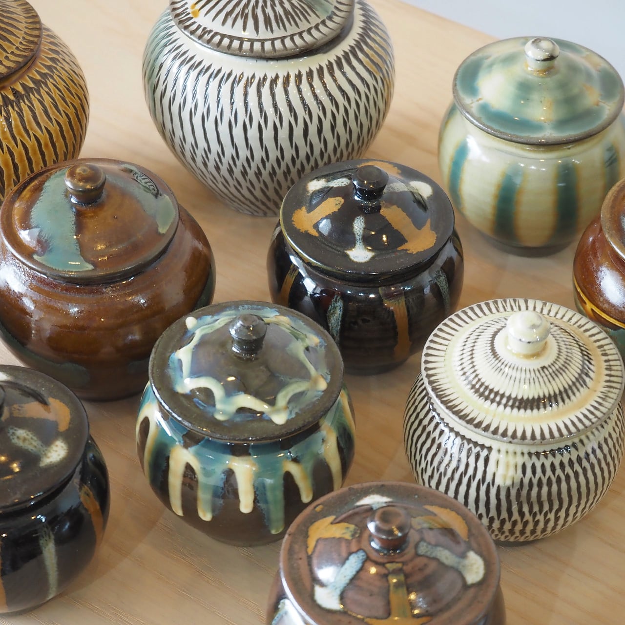 小鹿田焼 坂本浩二窯 1合壺(青乱れ流し)