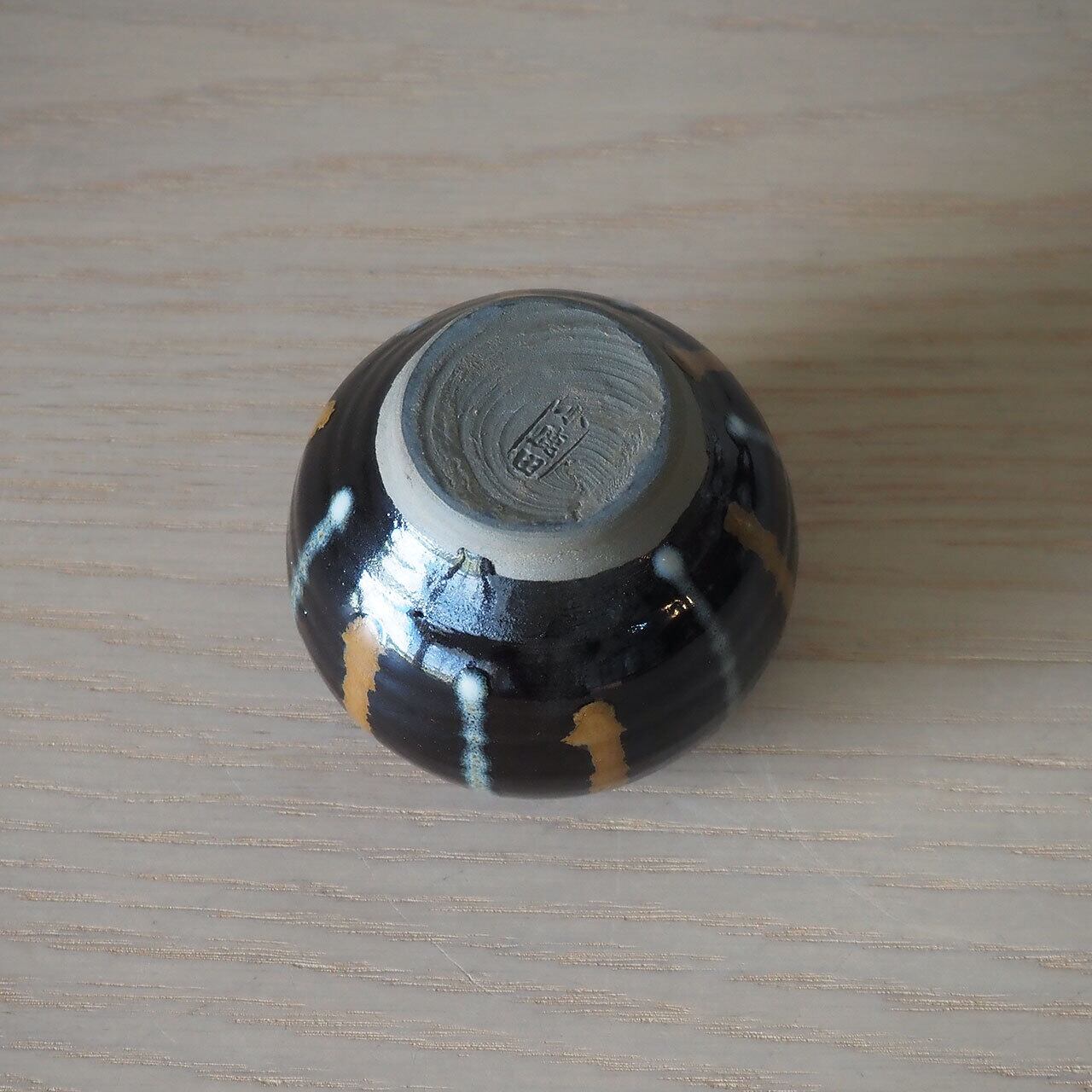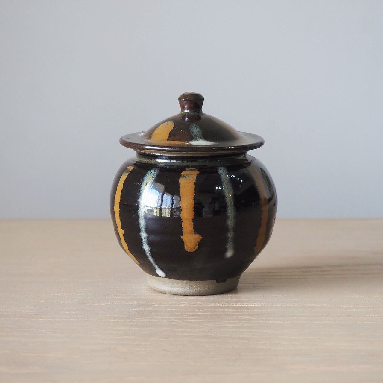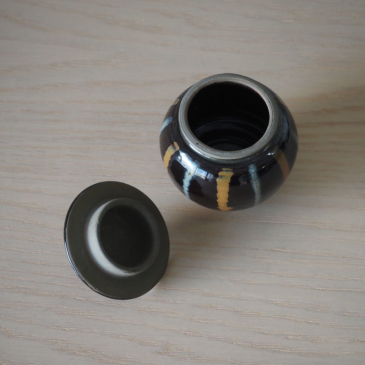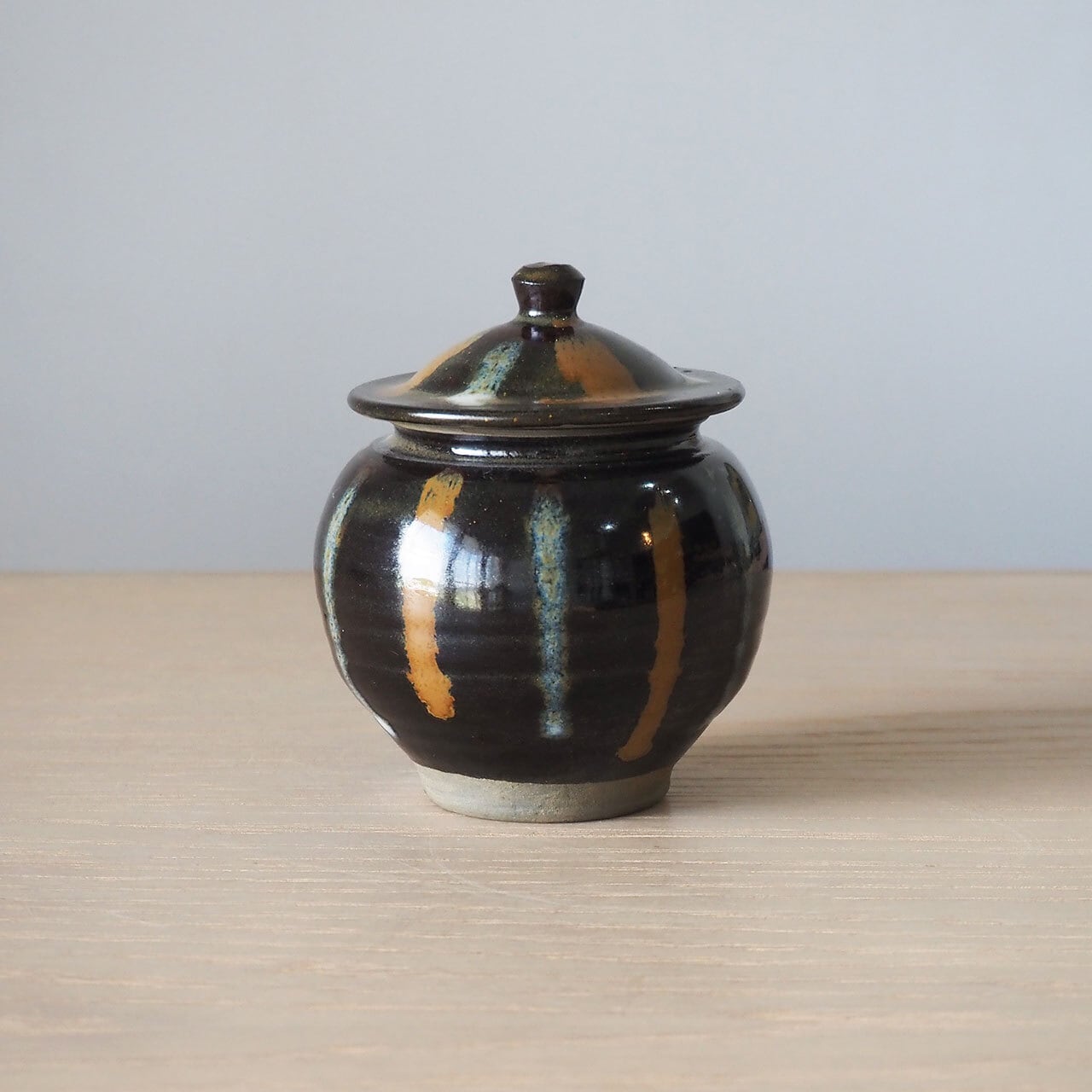 小鹿田焼 黒木昌伸窯 1合壺(黒/白黄流し)