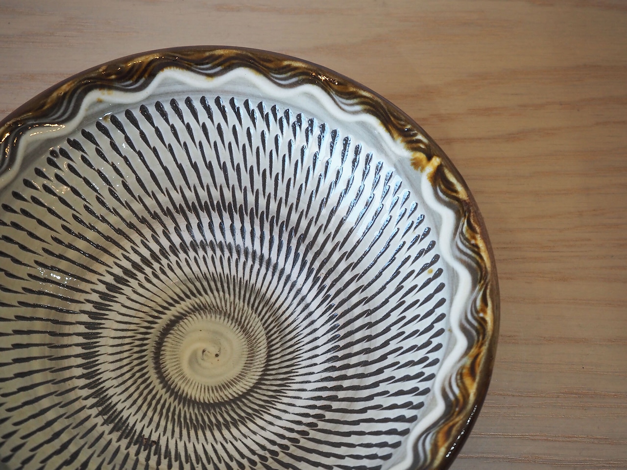 小鹿田らしい飛び鉋模様で、飽きの来ない品です。