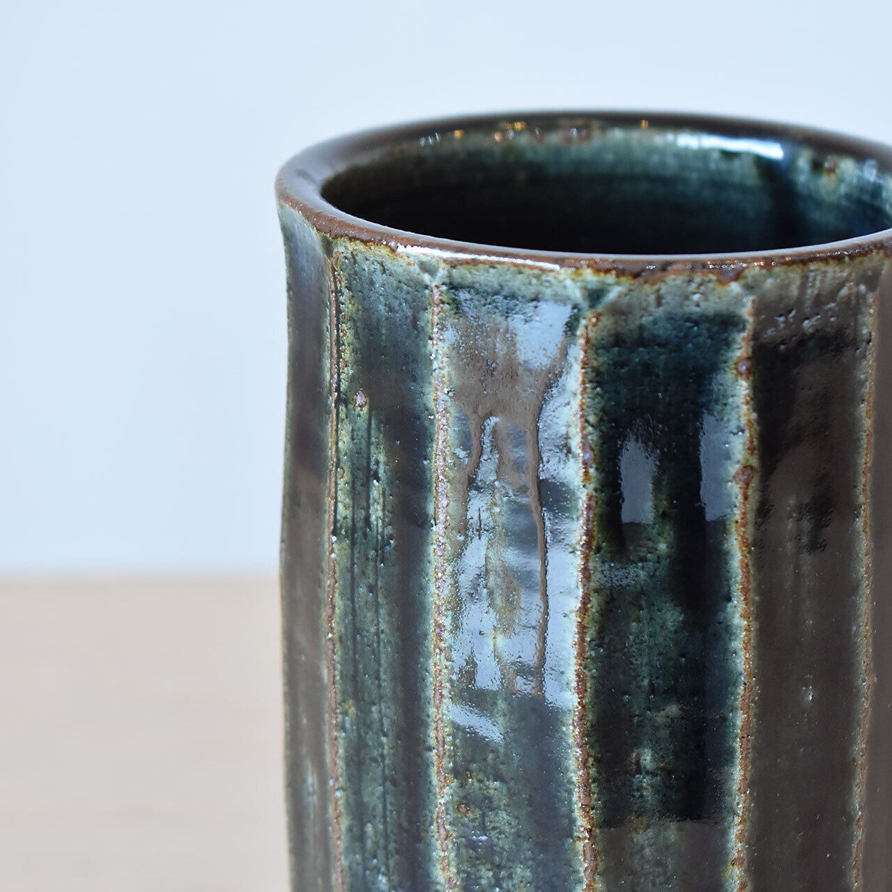 白掛けせずに呉須釉を掛けたことで、深みのある焼き上がりの箸立て。