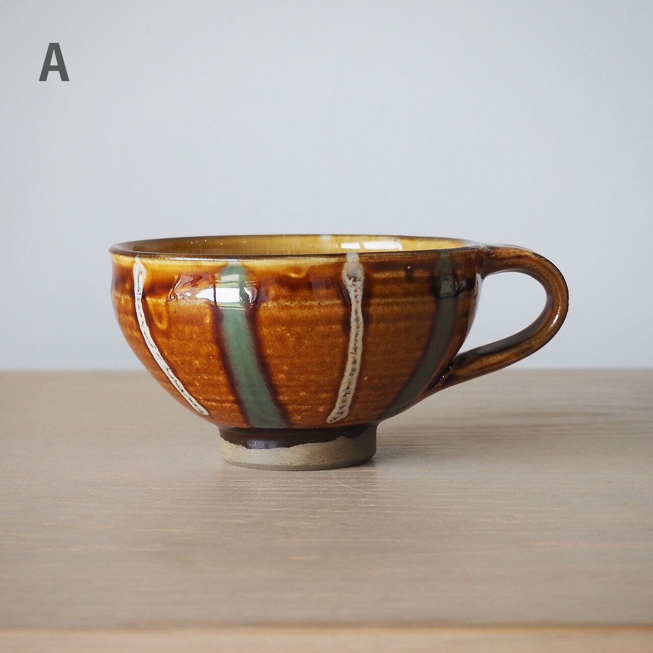 小鹿田焼 黒木昌伸窯 片手スープ碗(飴/三彩)