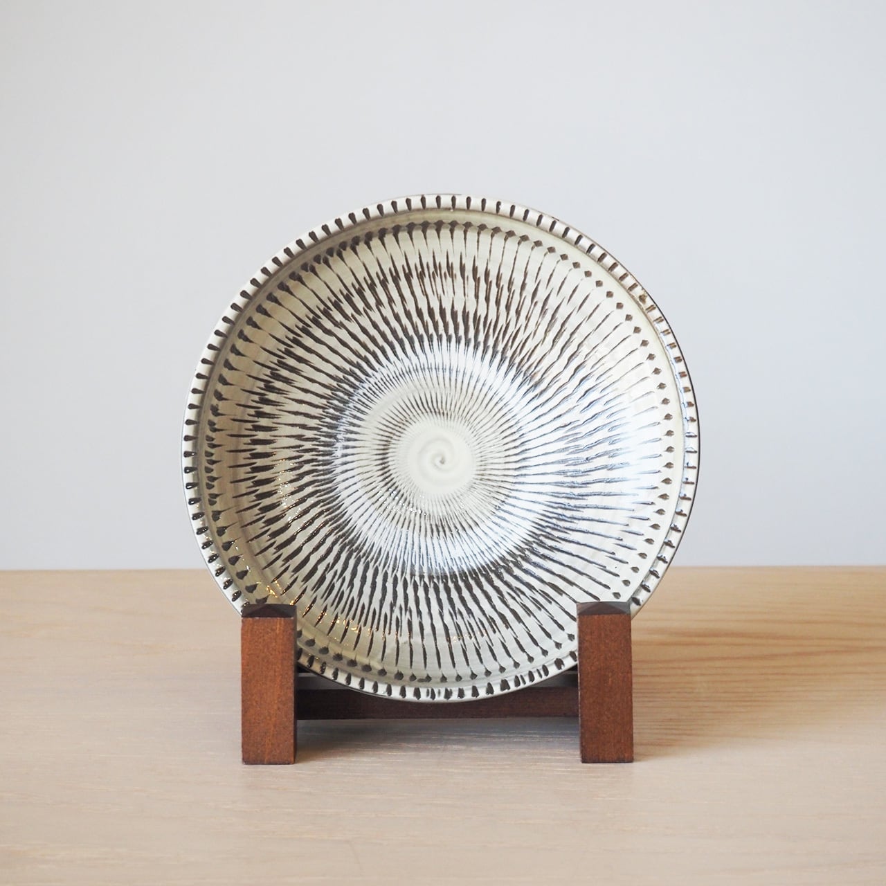 小鹿田焼 黒木昌伸窯 5寸縁角切立皿(白/飛び鉋)