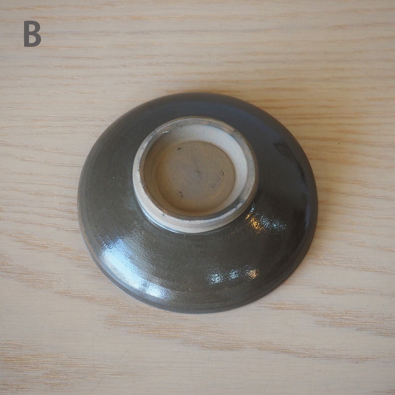 蛤のように伏せ合せて焼かれたため、縁が素焼きになっている4寸皿。