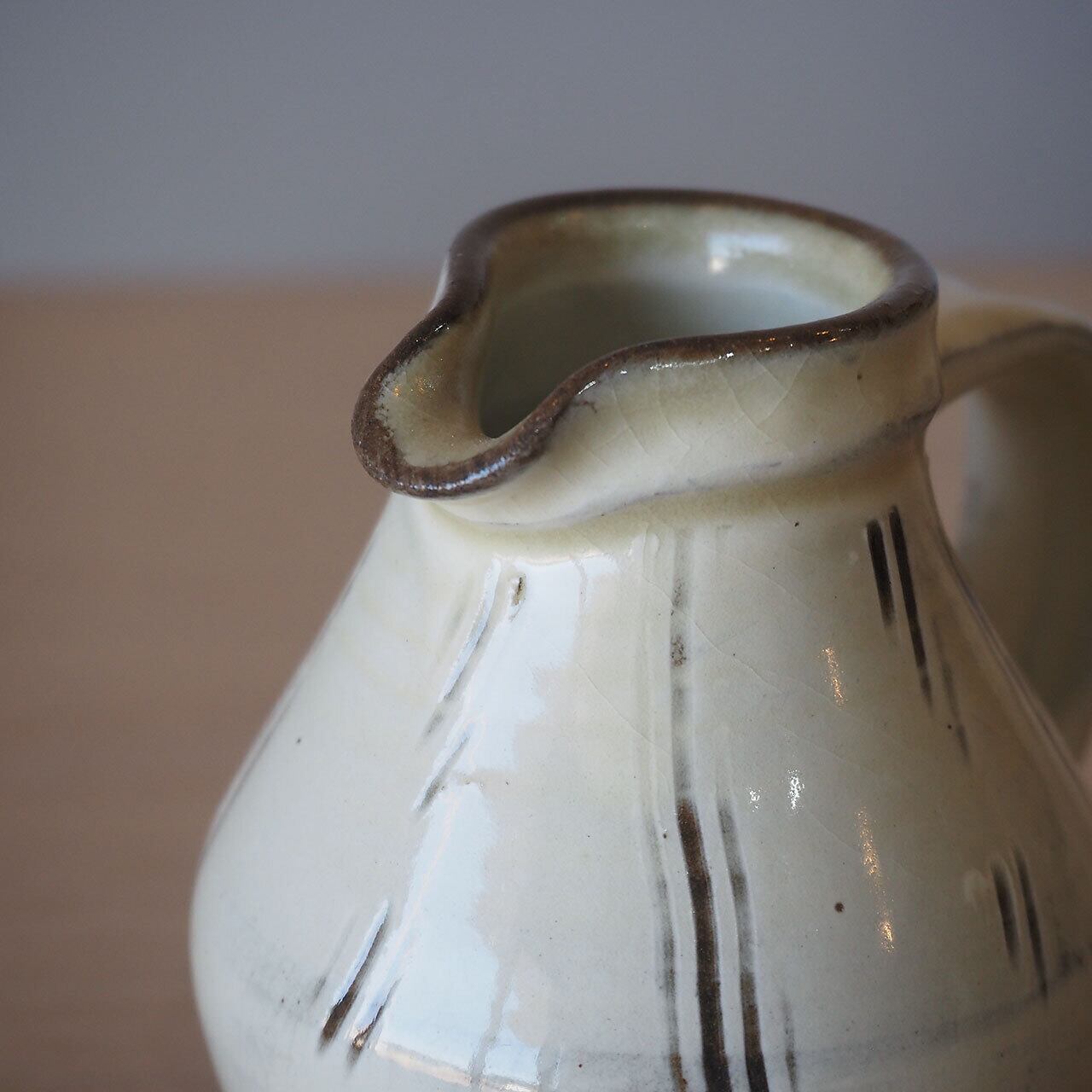 小鹿田焼 黒木昌伸窯 ミルクピッチャー(白・櫛描)