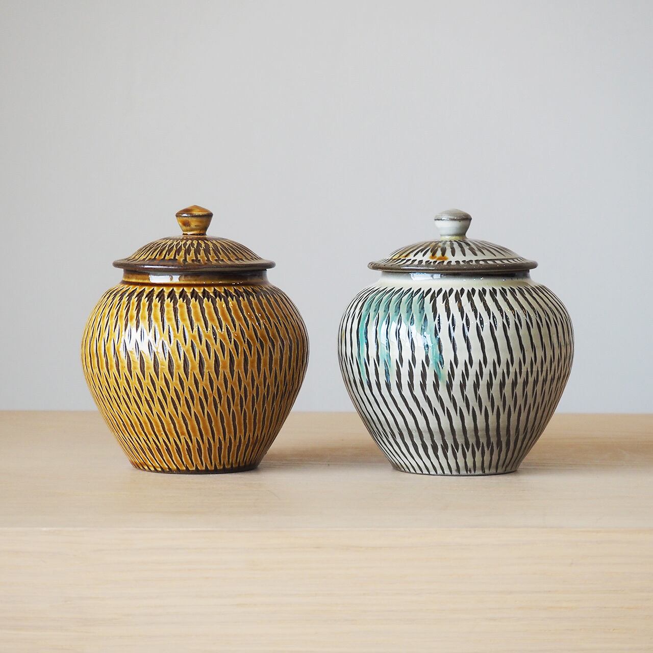 小鹿田焼 坂本浩二窯 2合壺(飴・飛び鉋)