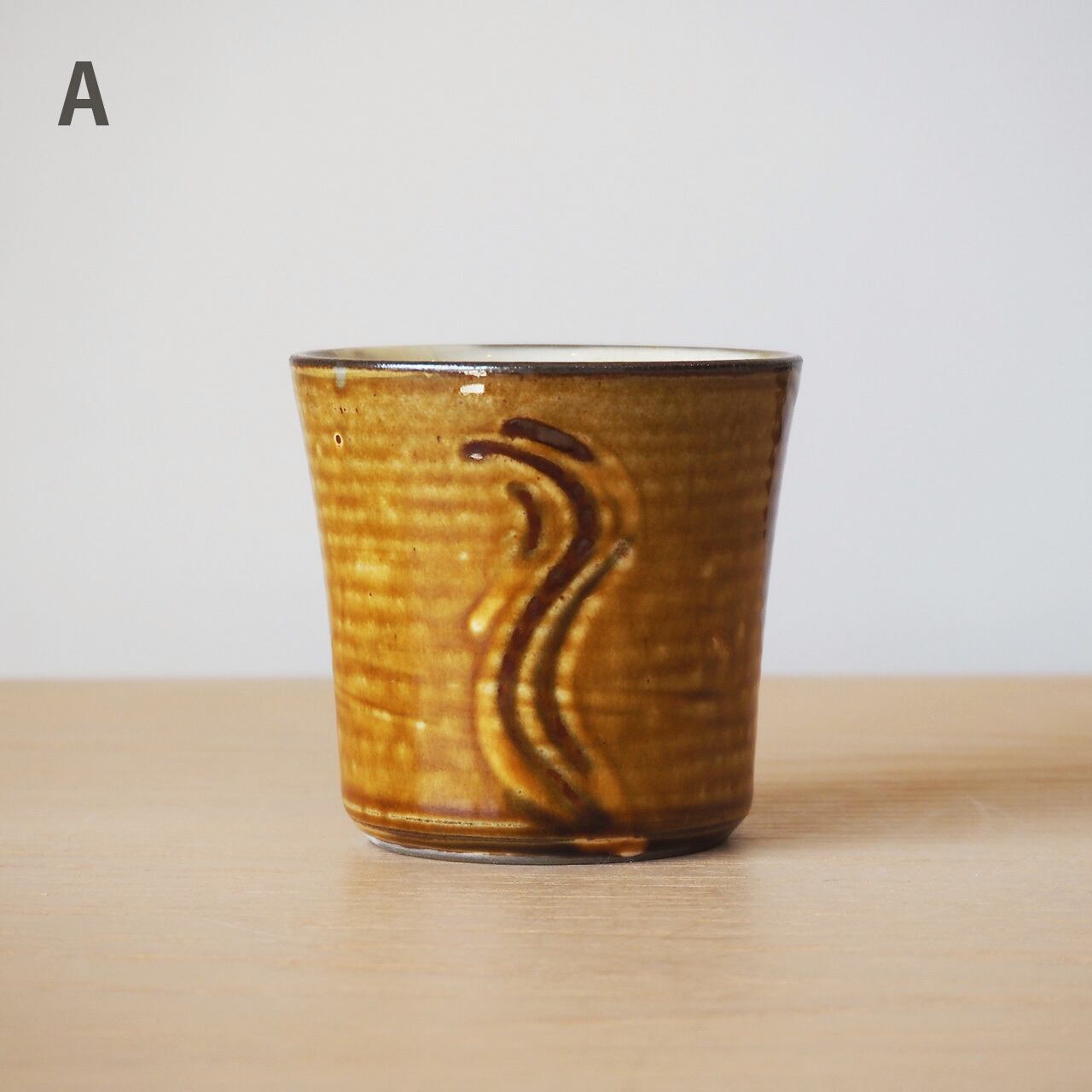 小鹿田焼 坂本浩二窯 コップ(飴/櫛描き)