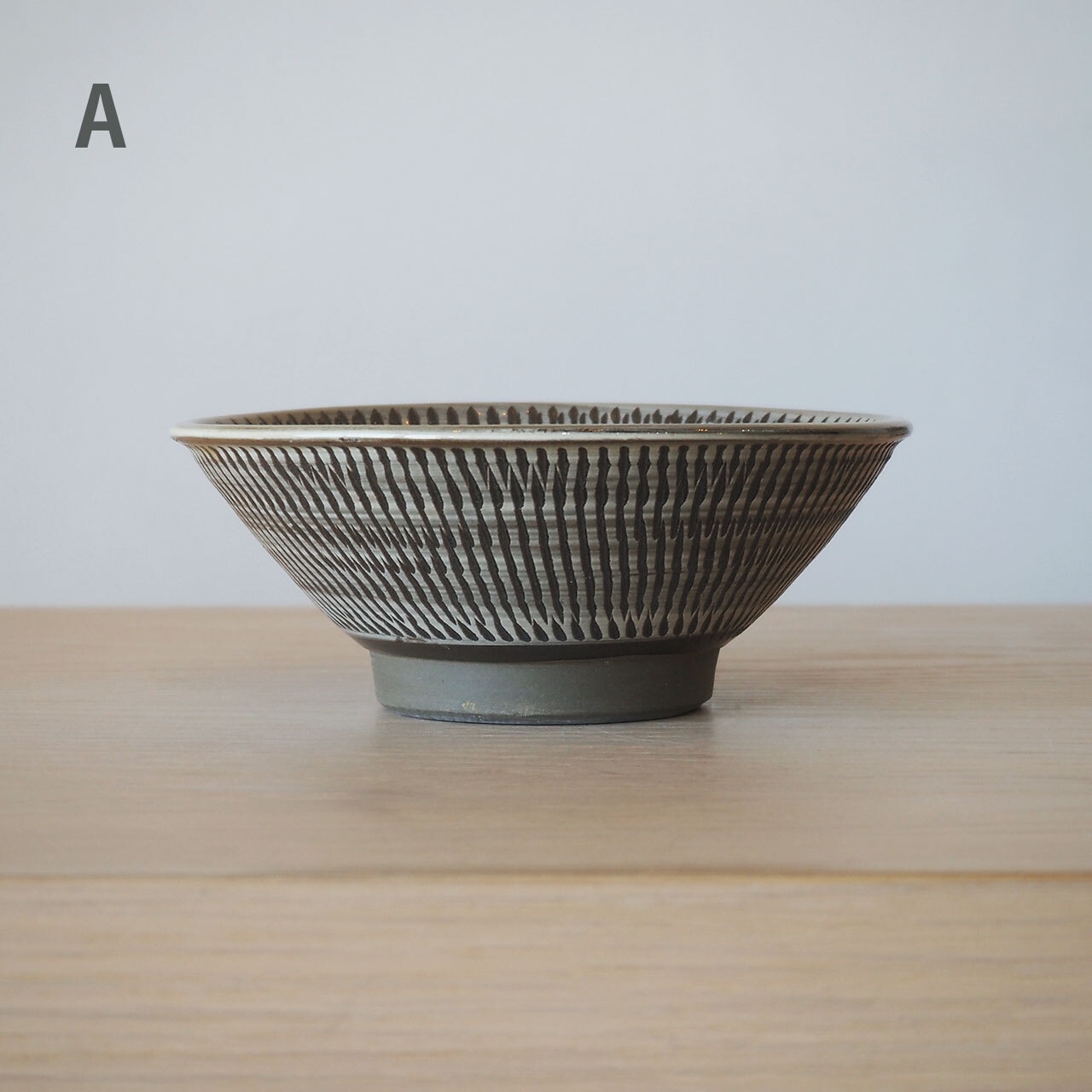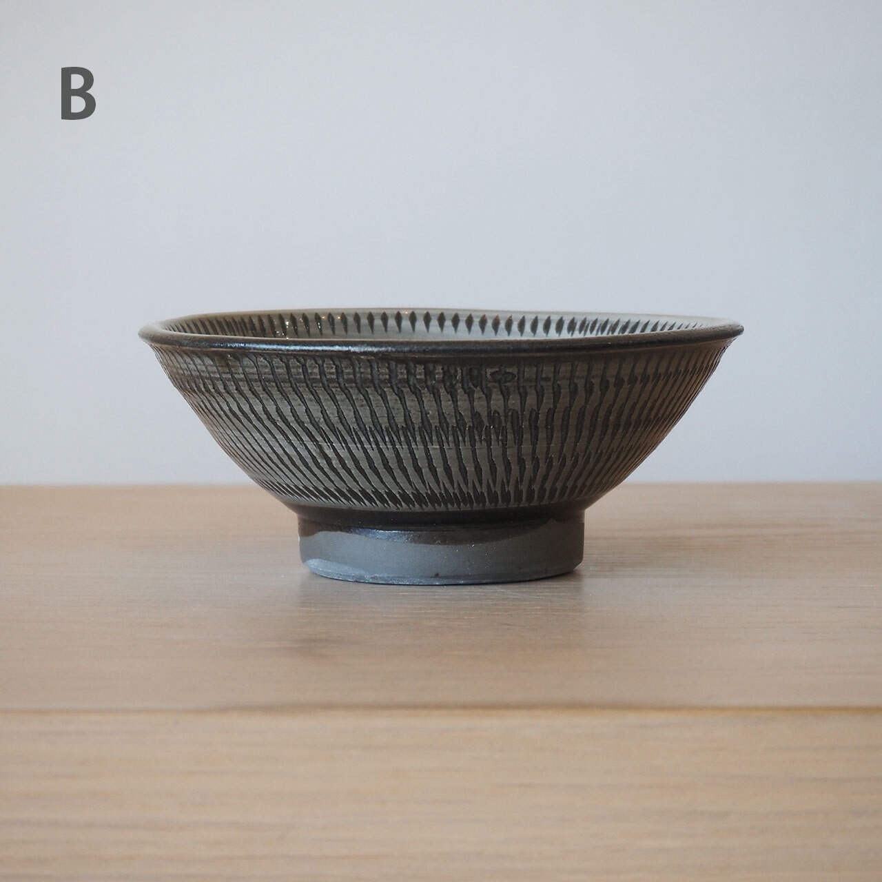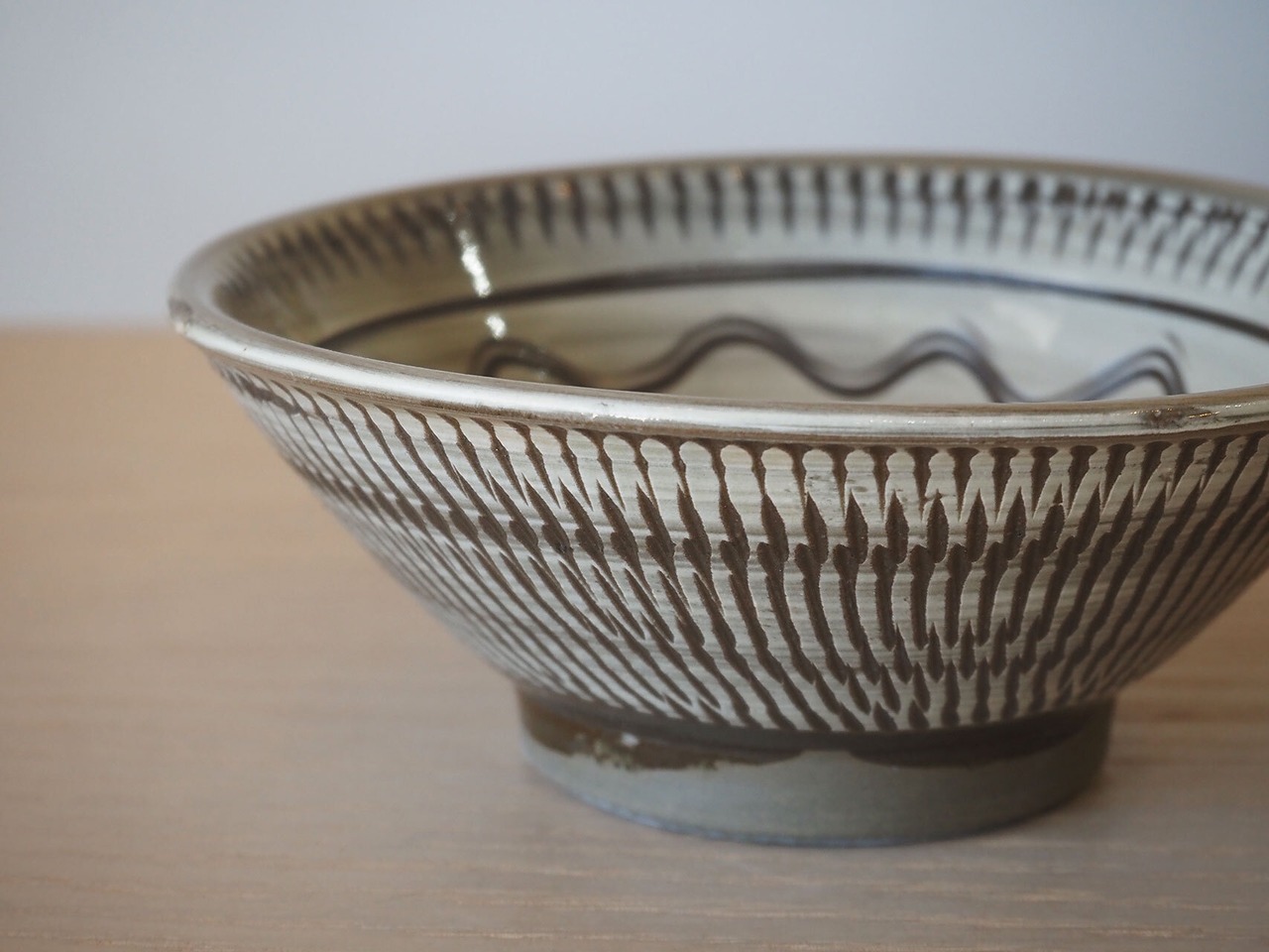 小鹿田焼 黒木昌伸窯 5寸丼(白/飛び鉋に櫛)