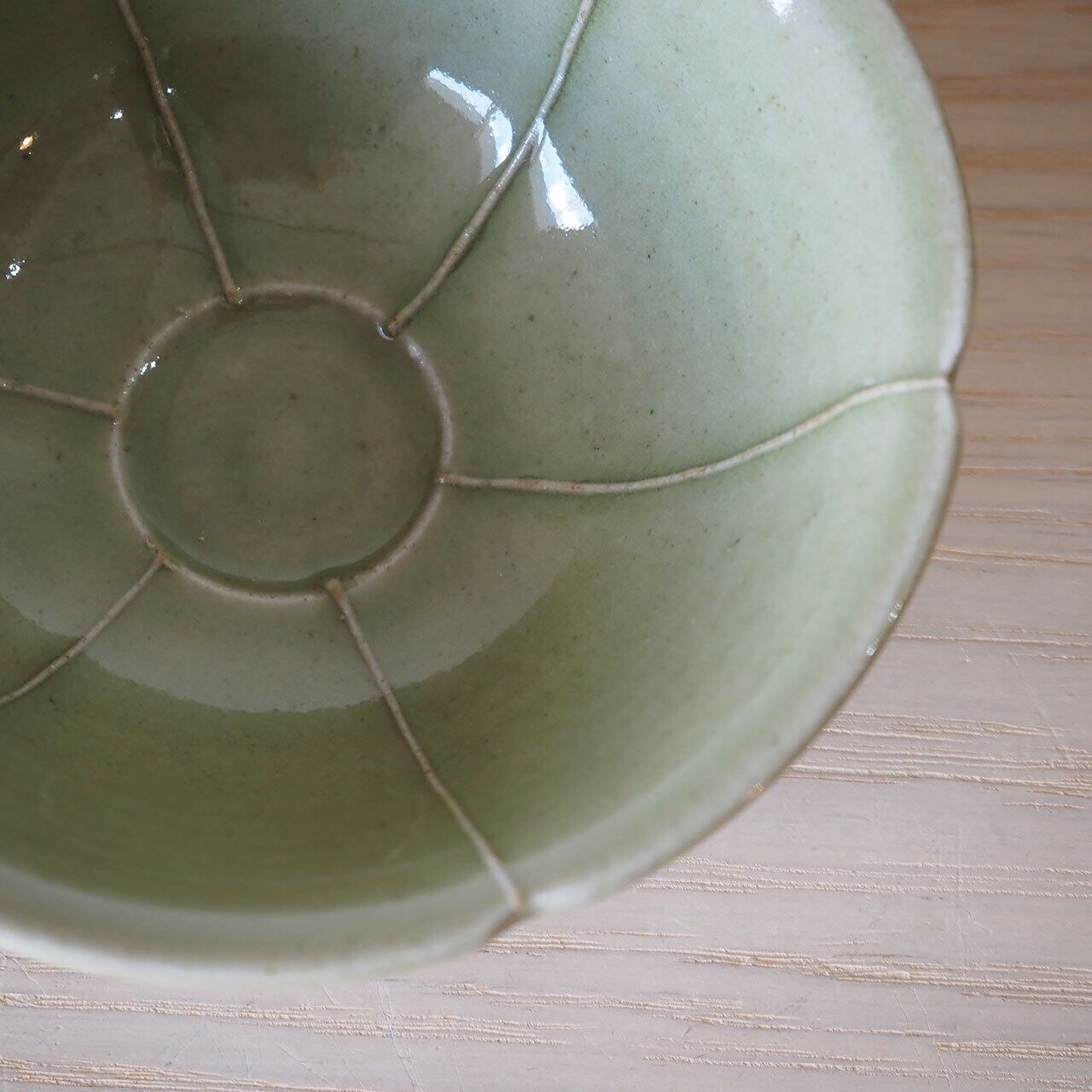 風見窯 堆線輪花小鉢(鶯青瓷)