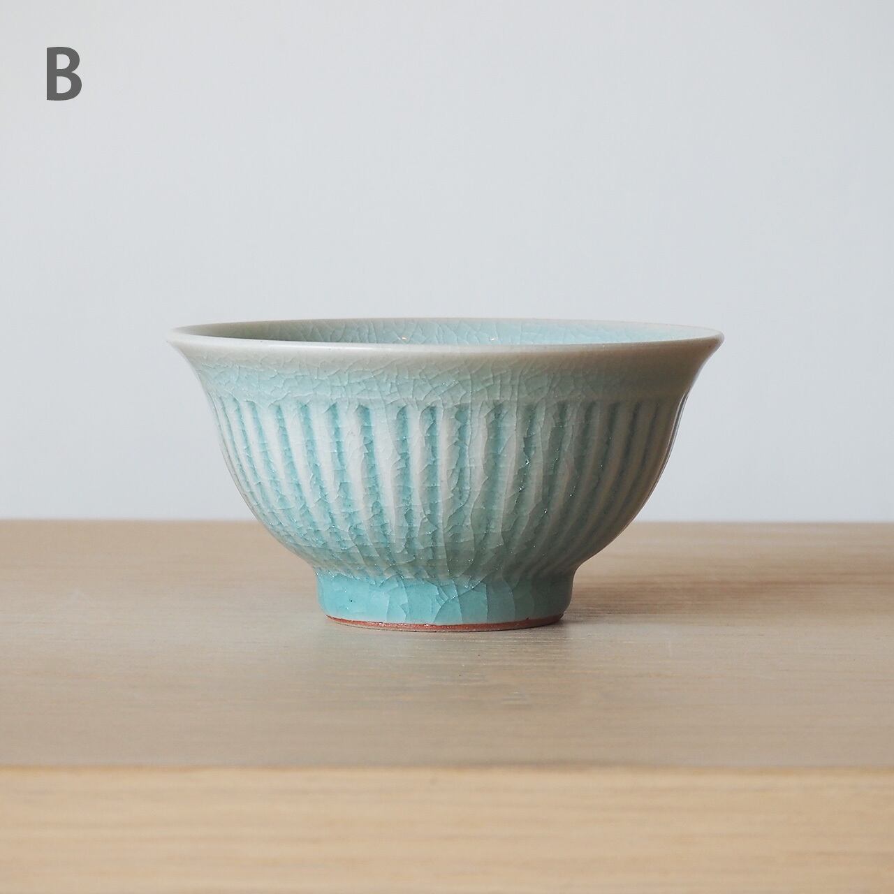 風見窯の代名詞とも言える青磁がきらきらと美しい、少し大振りの飯碗。