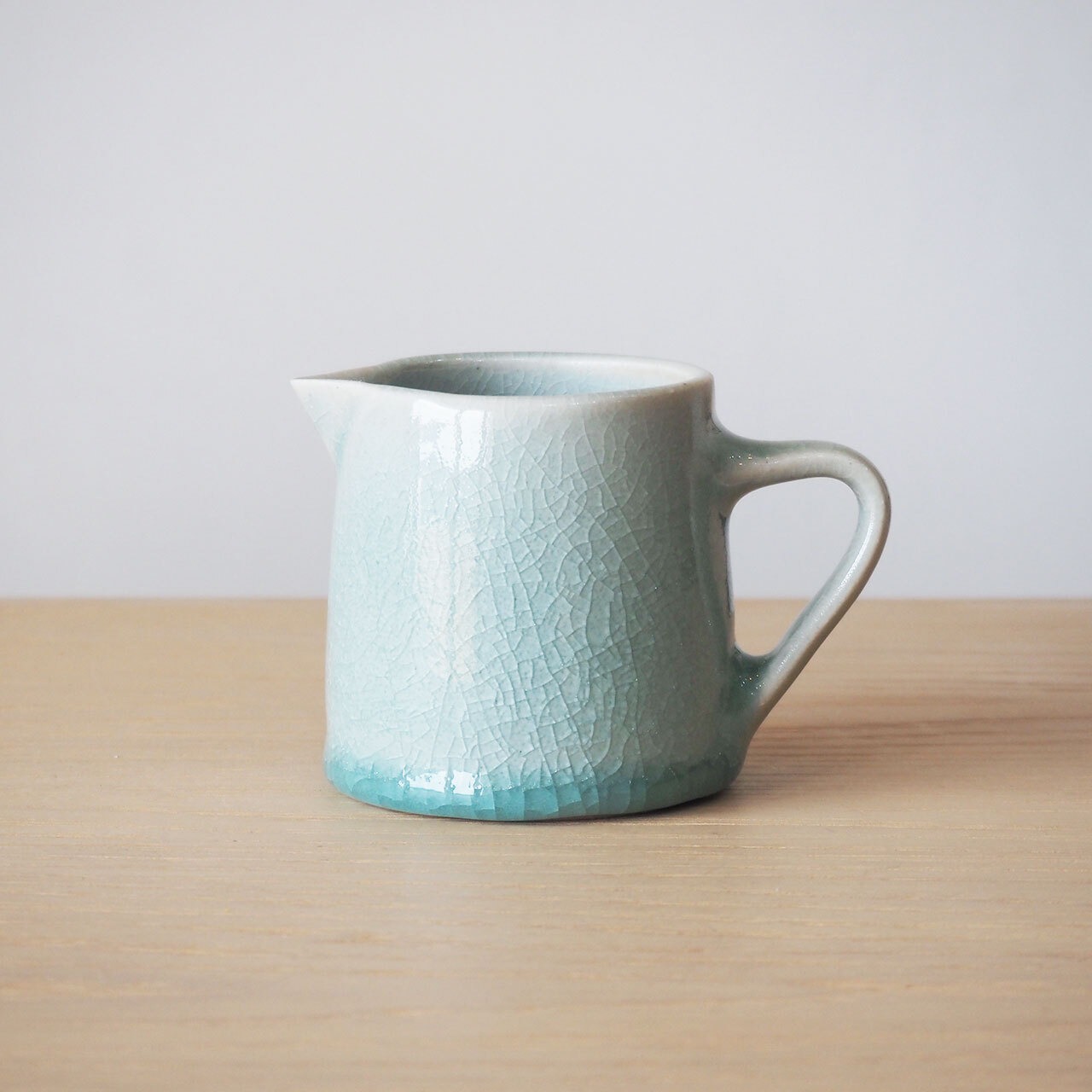 すっきりとした形と青磁が美しい、小振りのピッチャー。