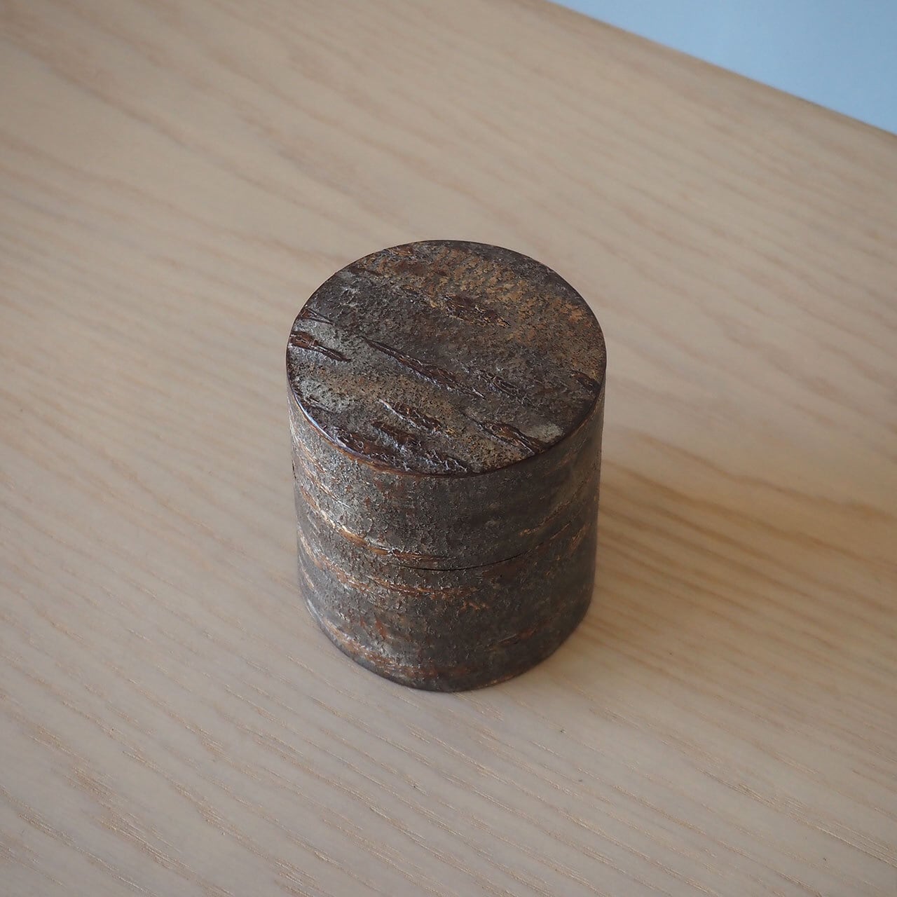 樺細工の中でも貴重な霜降皮を使った茶筒。