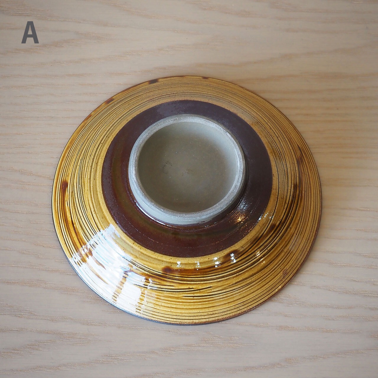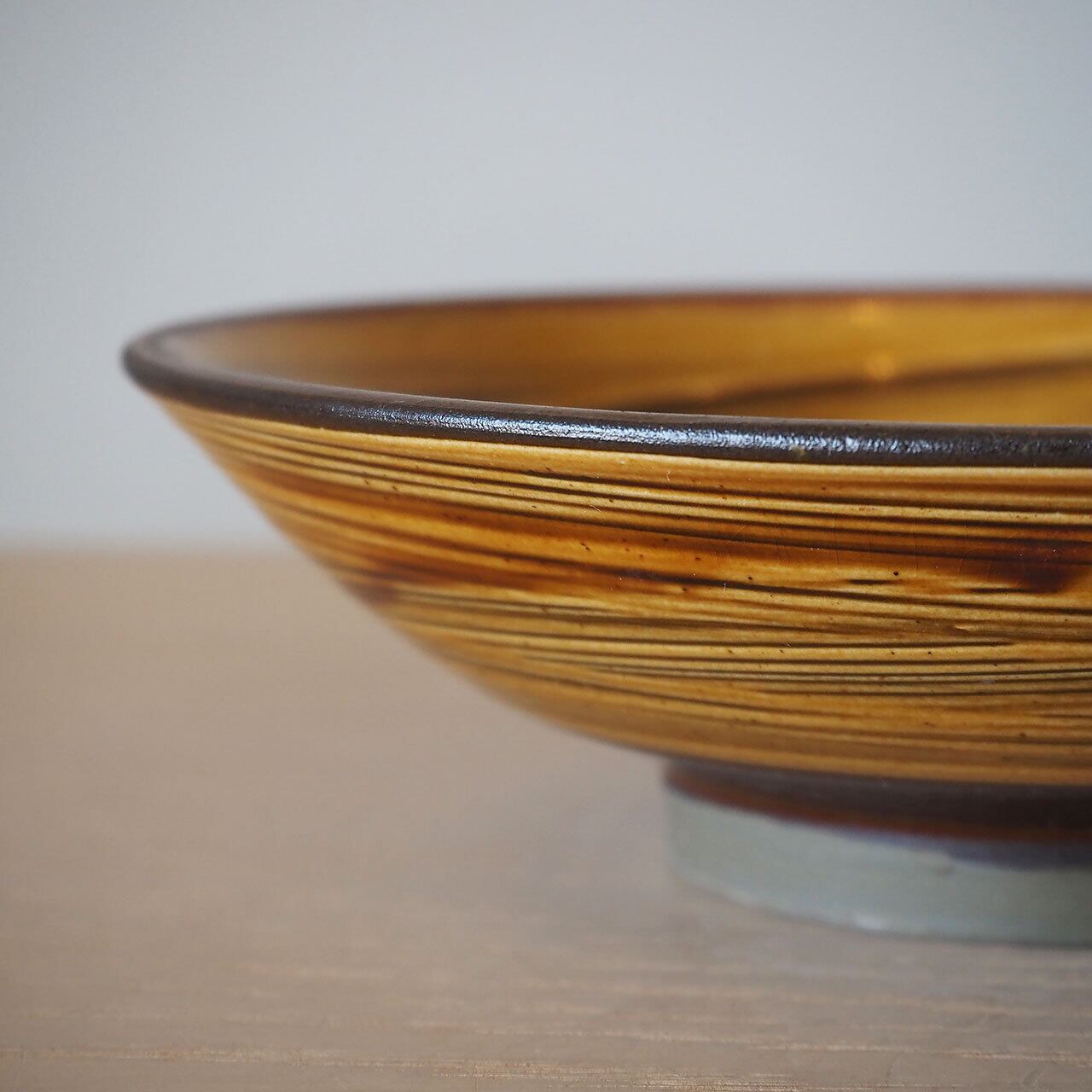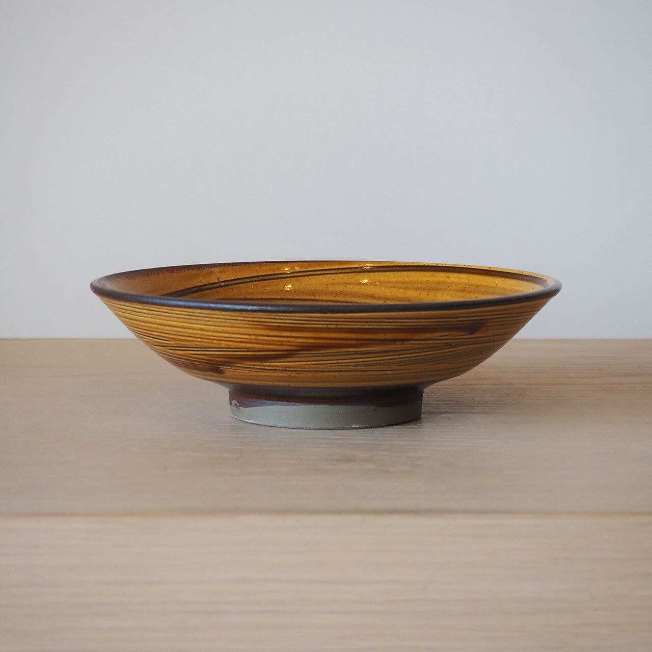 小鹿田焼 坂本浩二窯 6寸深皿(飴/藁引き)
