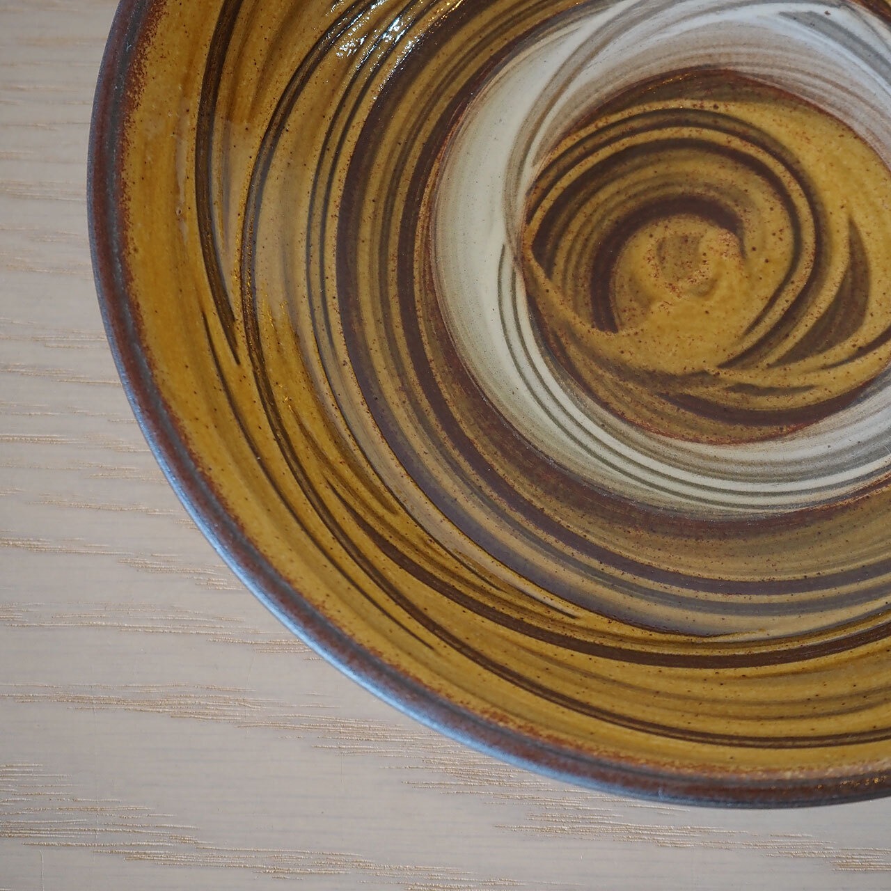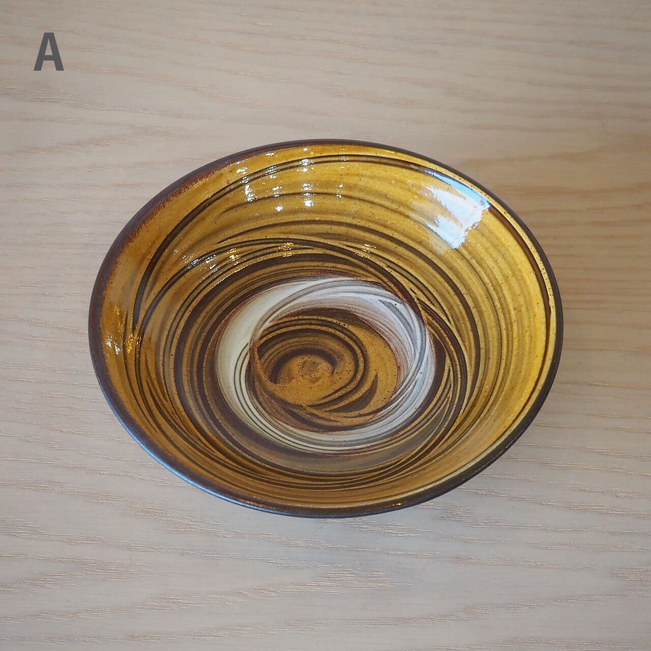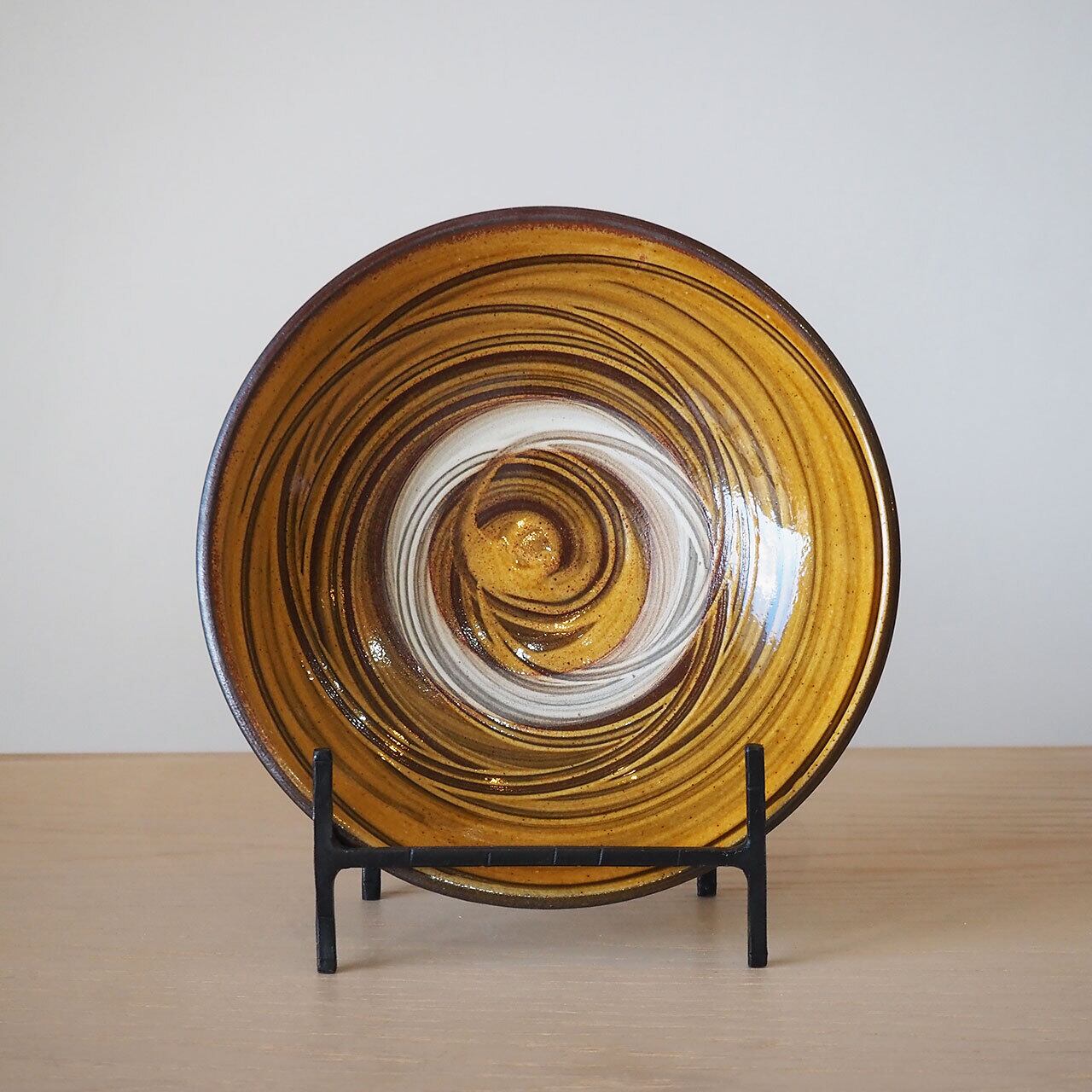 小鹿田焼 坂本浩二窯 6寸深皿(飴/藁引き)