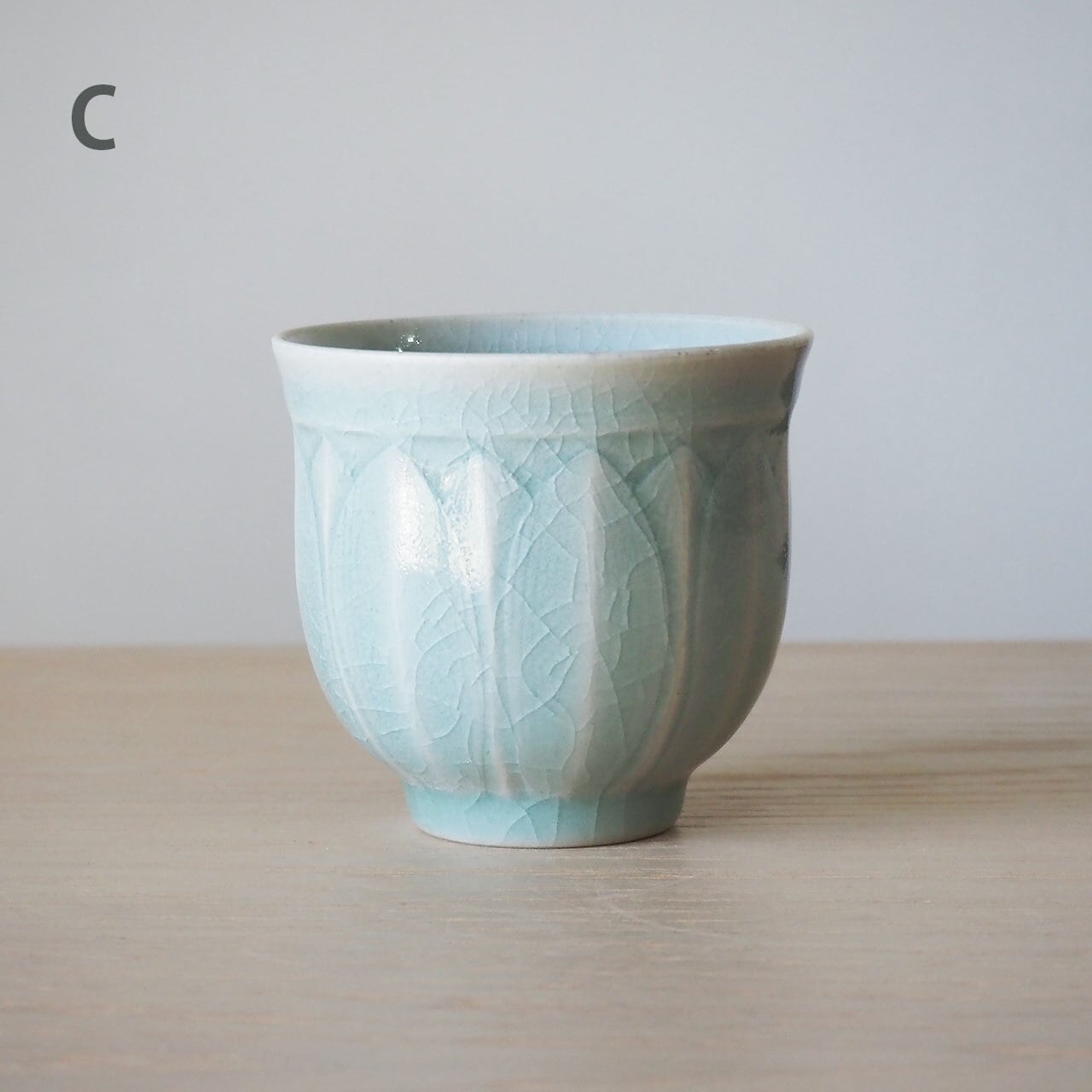 しのぎを入れてから更に模様を彫り入れるという、手の込んだ湯呑。