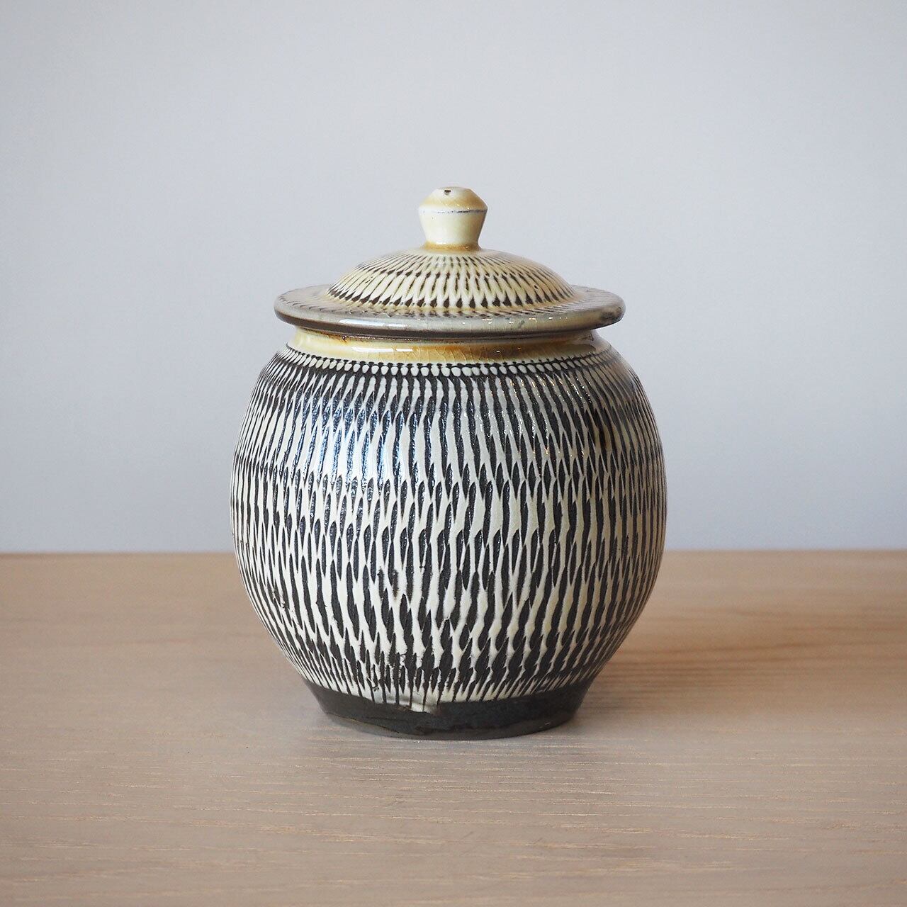 小鹿田焼 黒木昌伸窯 3合壺(白/飛び鉋)