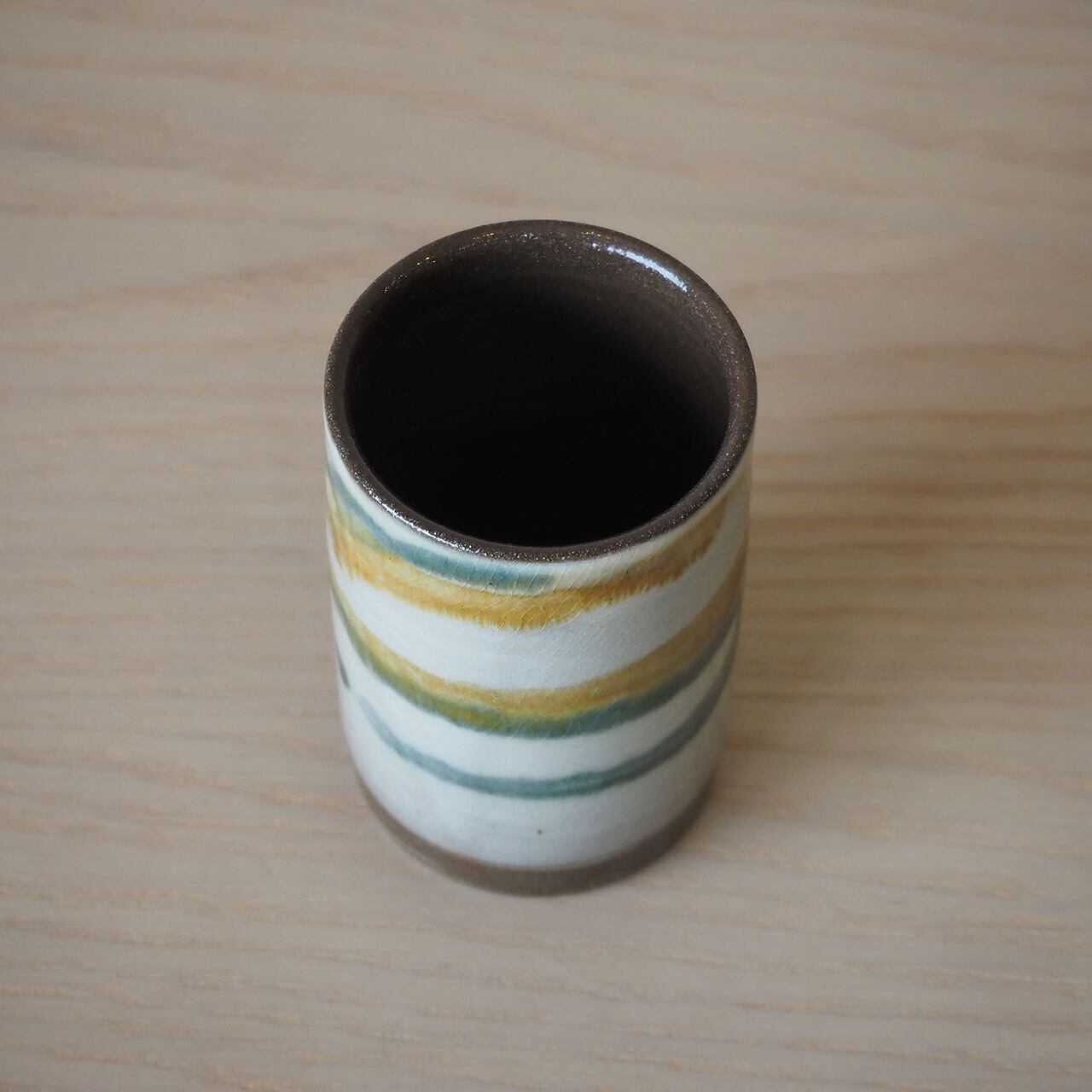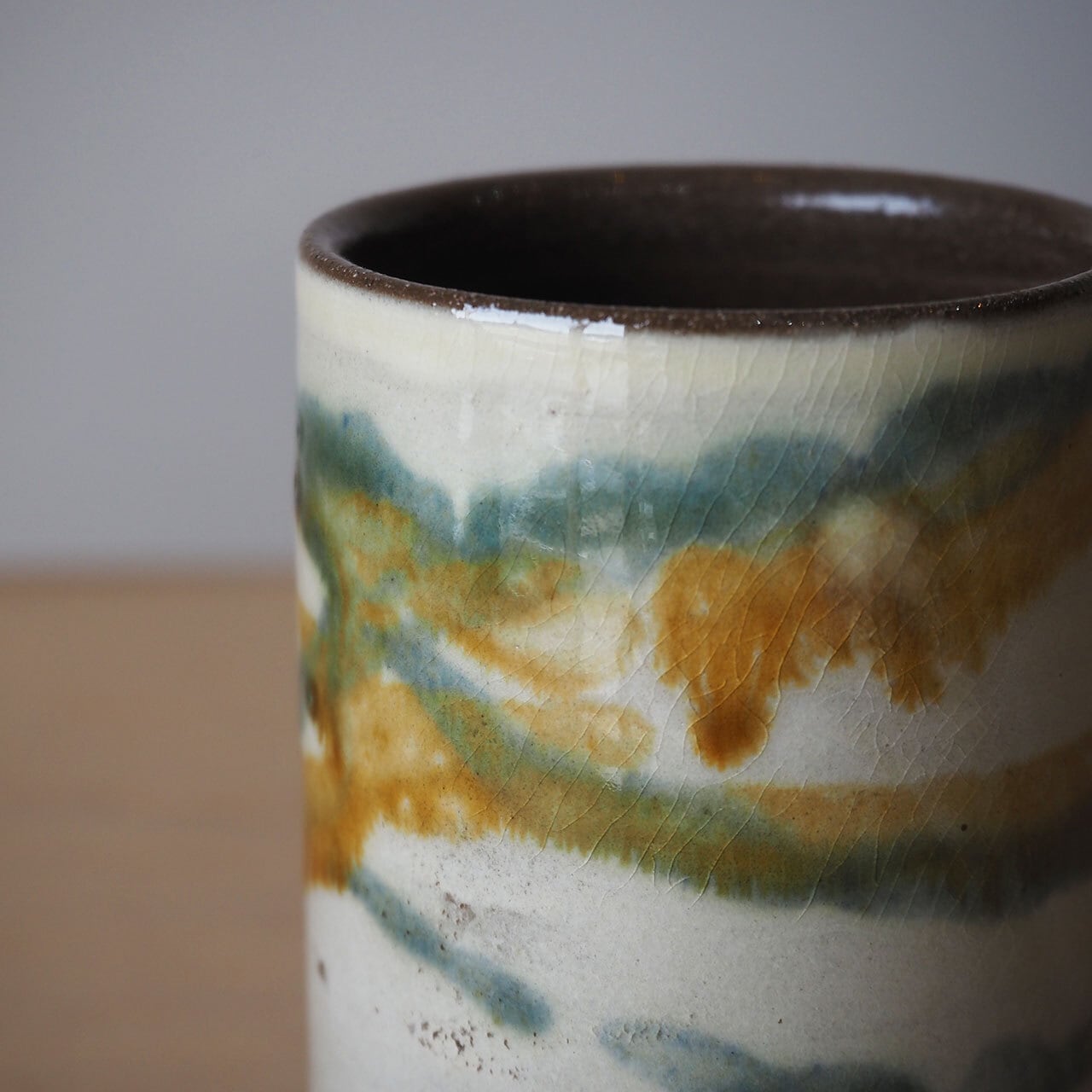 小鹿田焼 坂本浩二窯 3寸筒花瓶(白/三彩流し)